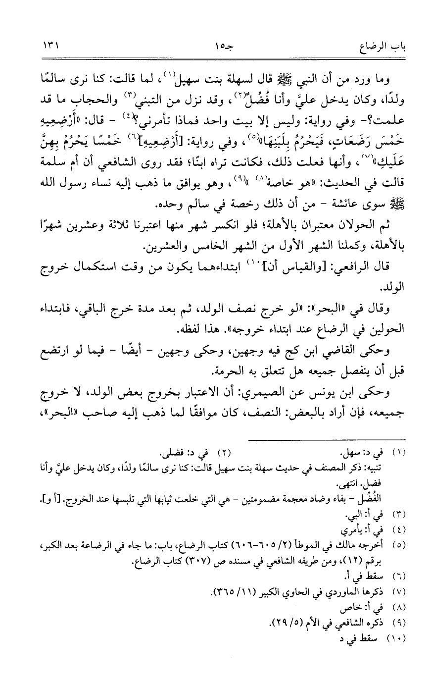 وما ورد من أن النبي صلى الله عليه وسلم قال لسهلة بنت سهيل، لما قالت: كنا نرى سالماً ولداً، وكان يدخل علي وأنا فضل، وقد نزل من التبني والحجاب ما قد علمت؟ - وفي رواية: وليس إلا بيت واحد فماذا تأمرني؟ - قال: "أَرْضِعِيهِ خَمْسَ رَضَعَاتٍ، فَيَحْرُمُ بِلَبَنِهَا"، وفي رواية: [أَرْضِعِيهِ] خَمْساً يَحْرُمْ بِهِنَّ عَلَيكِ"، وأنها فعلت ذلك، فكانت تراه ابناً؛ فقد روى الشافعي أن أم سلمة قالت في الحديث: "هو خاصة"، وهو يوافق ما ذهب إليه نساء رسول الله صلى الله عليه وسلم سوى عائشة- من أن ذلك رخصة في سالم وحده.