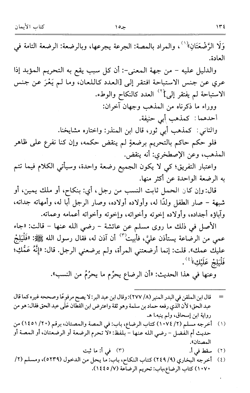 وعنها في هذا الحديث: "أن الرضاع يحرم ما يحرم من النسب".