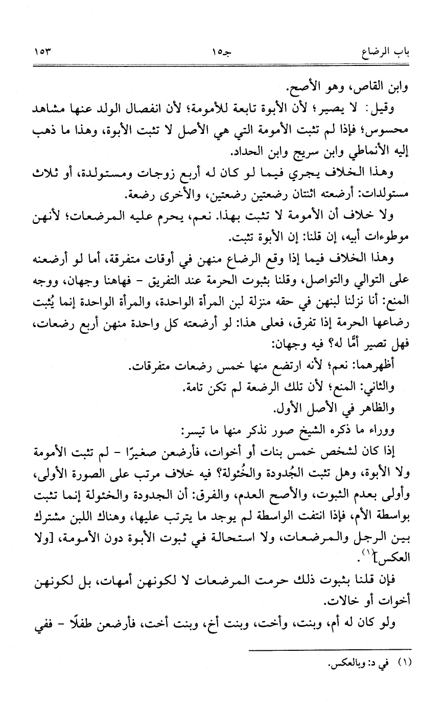 وهذا الخلاف يجري فيما لو كان له أربع زوجات ومستولدة، أو ثلاث مستولدات: أرضعته اثنتان رضعتين رضعتين، والأخرى رضعة.