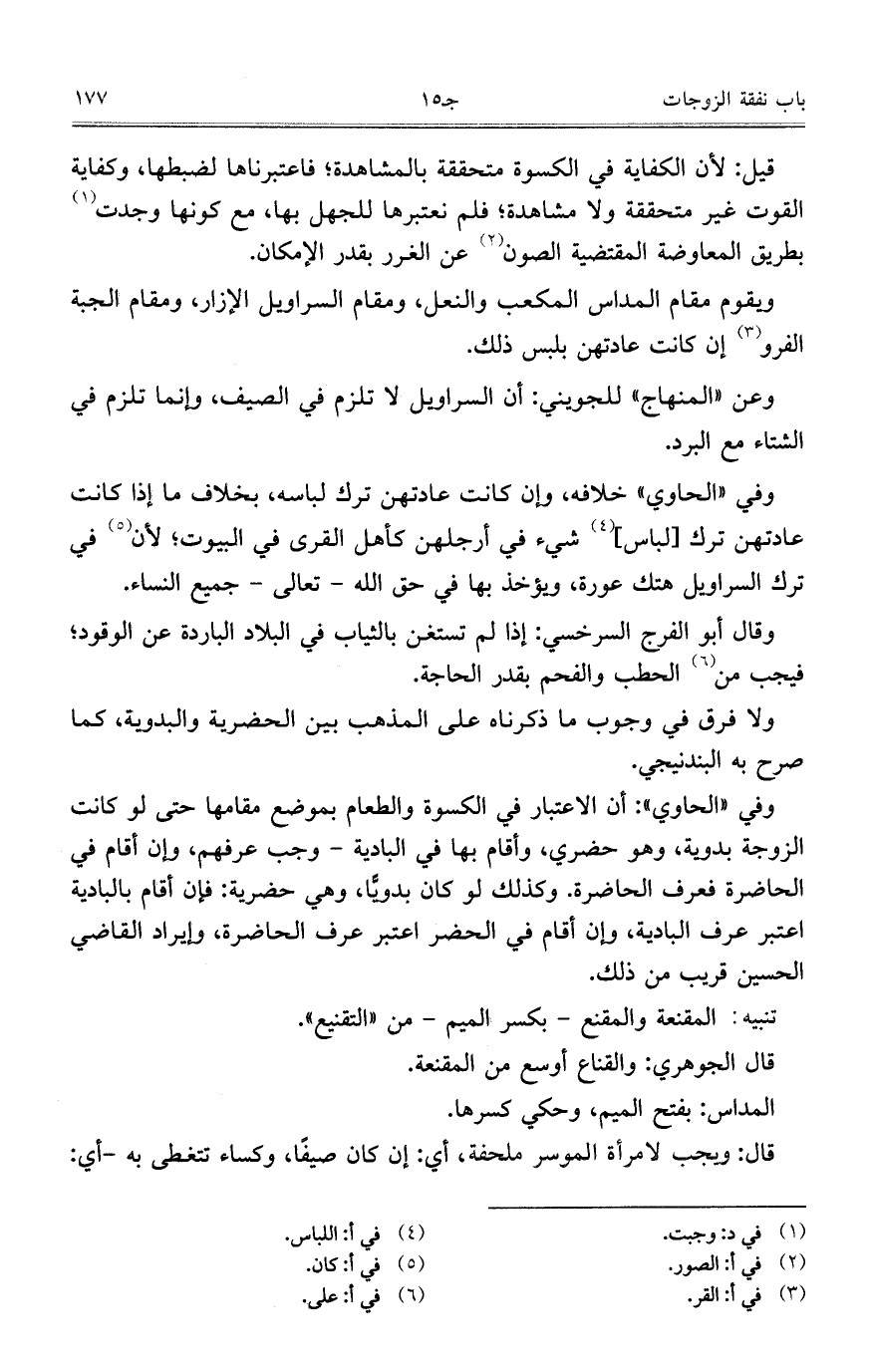 وقال أبو الفجر السرخسي: إذا لم تستغن بالثياب في البلاد الباردة عن الوقود؛ فيجب من الحطب والفحم بقدر الحاجة.