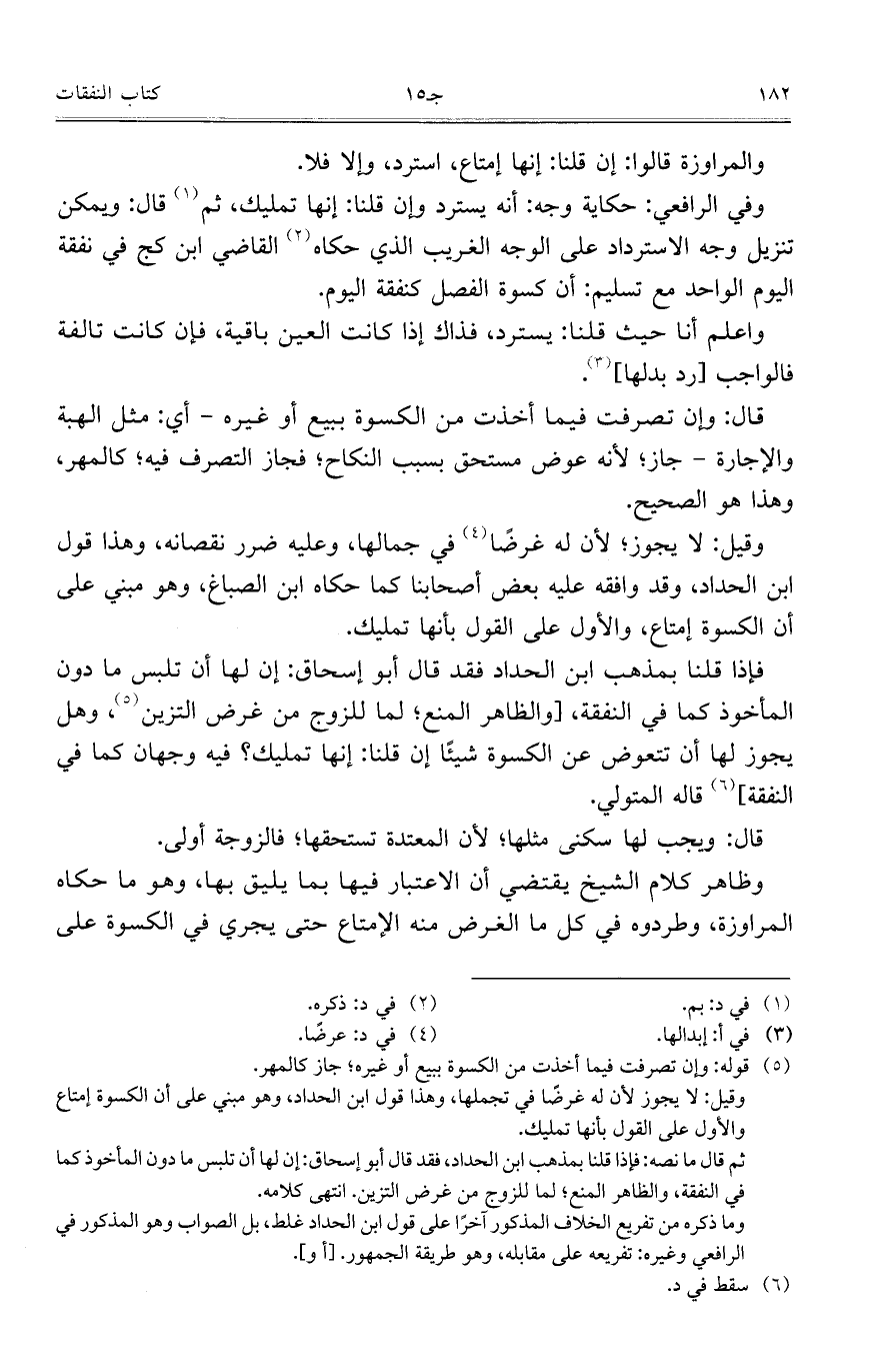 وفي الرافعي: حكاية وجه: أنه يسترد وإن قلنا: إنها تمليك، ثم قال: ويمكن تنزيل وجه الاسترداد على الوجه الغريب الذي حكاه القاضي ابن كج في نفقة اليوم الواحد مع تسليم: أن كسوة الفصل كنفقة اليوم.