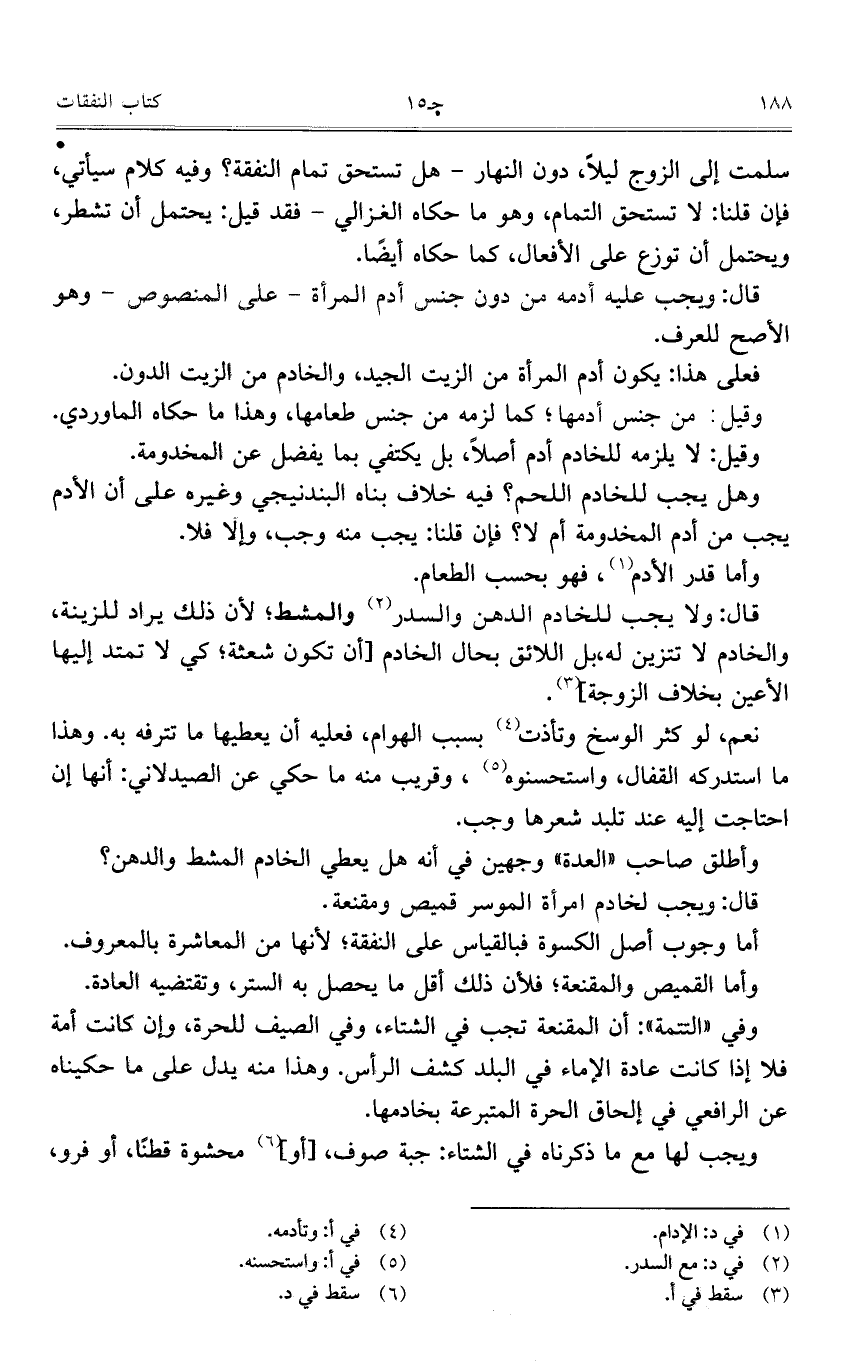 وأطلق صاحب "العدة" وجهين في أنه هل يعطي الخادم المشط والدهن؟