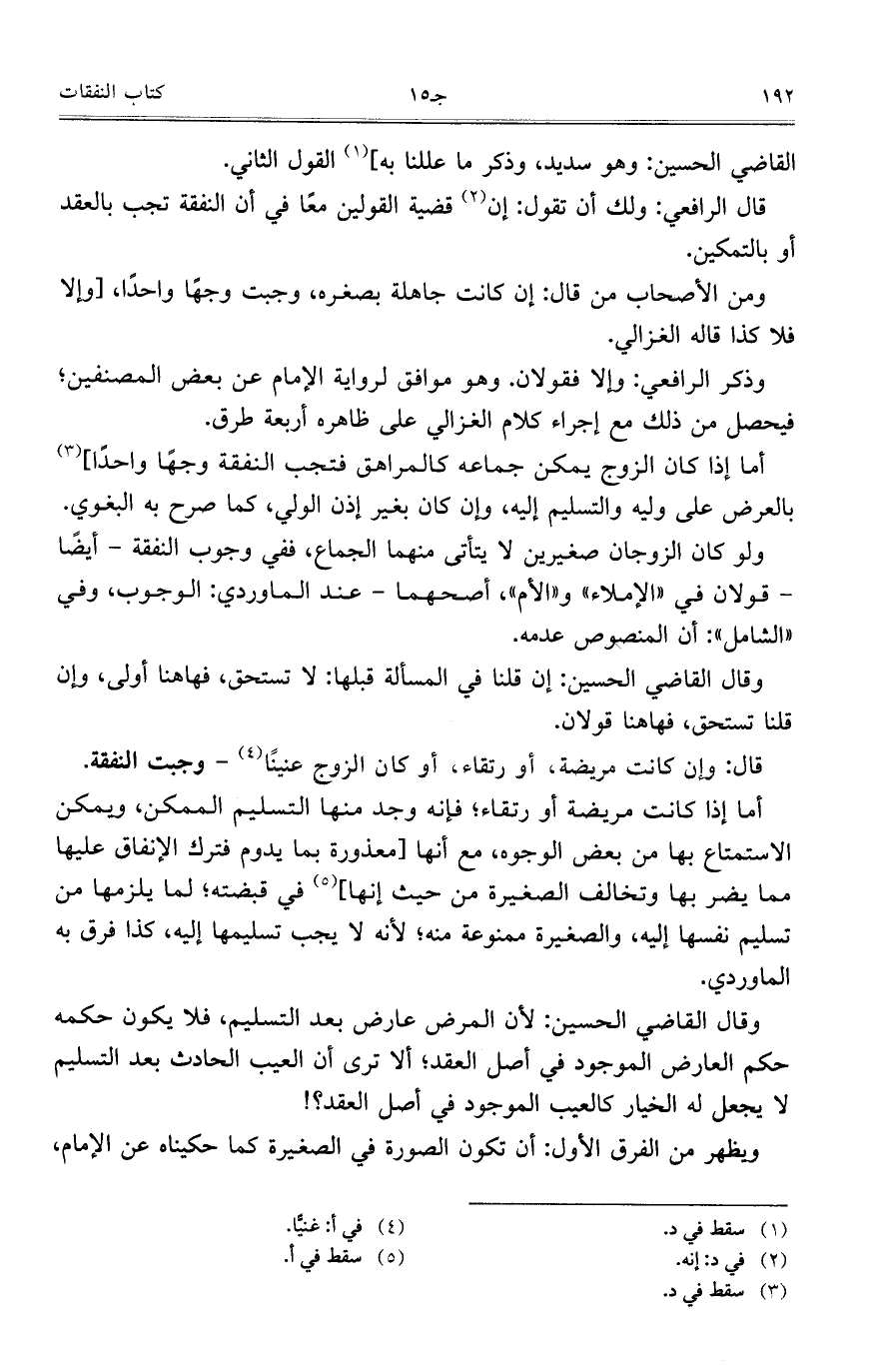 قال الرافعي: ولك أن تقول: إن قضية القولين معاً في أن النفقة تجب بالعقد أو بالتمكين.