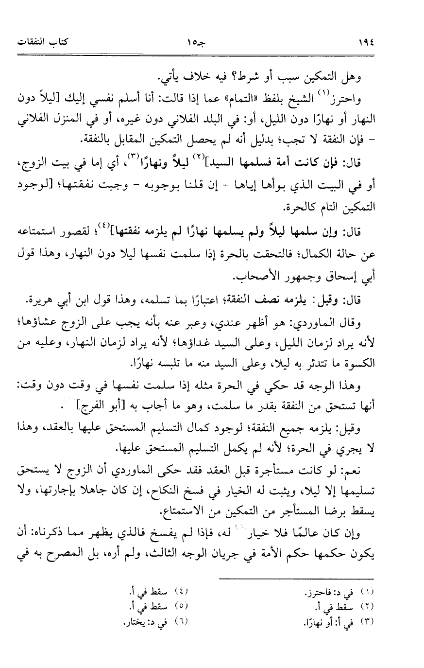 قال: وإن سلمها ليلاً ولم يسلمها نهاراً لم يلزمه نفقتها]؛ لقصور استمتاعه عن حالة الكمال؛ فالتحقت بالحرة إذا سلمت نفسها ليلاً دون النهار، وهذا قول أبي إسحاق وجمهور الأصحاب.