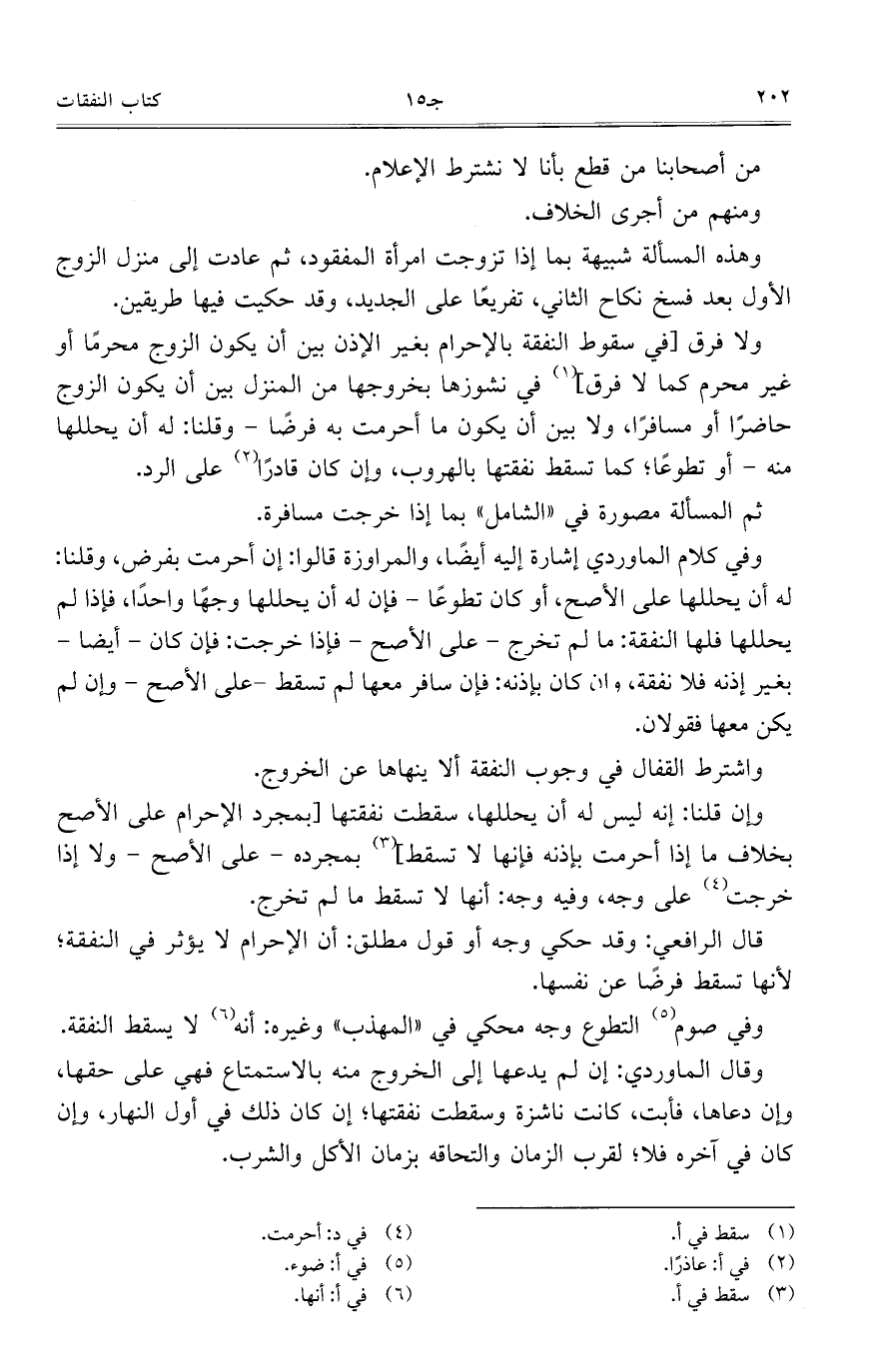 وفي كلام الماوردي إشارة إليه أيضاً، والمراوزة قالوا: إن أحرمت بفرض، وقلنا: له أن يحللها على الأصح، أو كان تطوعاً- فإن له أن يحللها وجهاً واحداً، فإذا لم يحللها فلها النفقة: ما لم تخرج- على الأصح- فإذا خرجت: فإن كان- أيضاً- بغير إذنه فلا نفقة، وإن كان بإذنه: فإن سافر معها لم تسقط- على الأصح- وإن لم يكن معها فقولان.