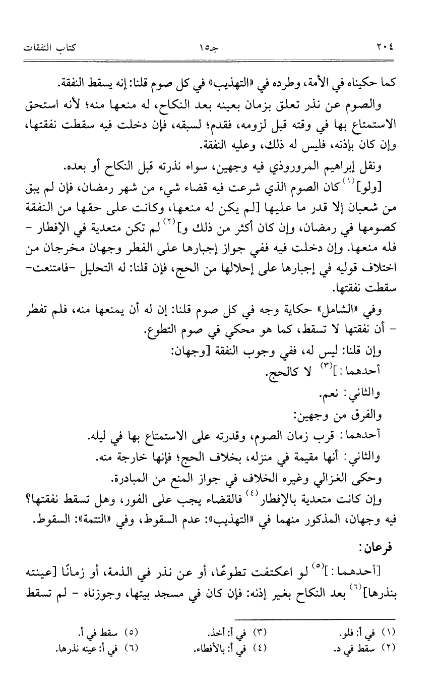 وفي "الشامل" حكاية وجه في كل صوم قلنا: إن له أن يمنعها منه، فلم تفطر – أن نفقتها لا تسقط، كما هو محكي في صوم التطوع.