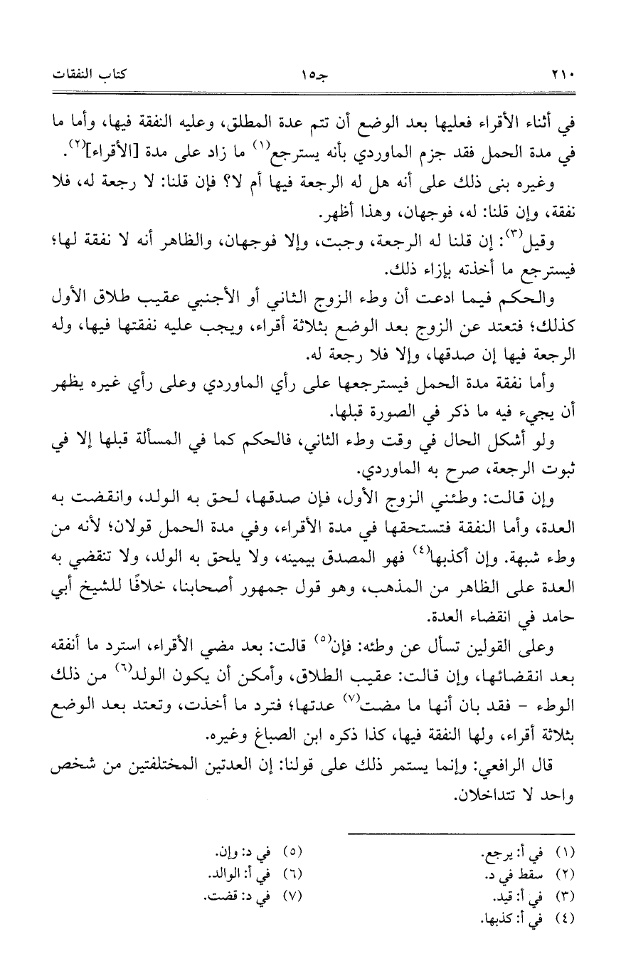 وأما نفقة مدة الحمل فيسترجعها على رأي الماوردي وعلى رأي غيره يظهر أن يجيء فيه ما ذكر في الصورة قبلها.