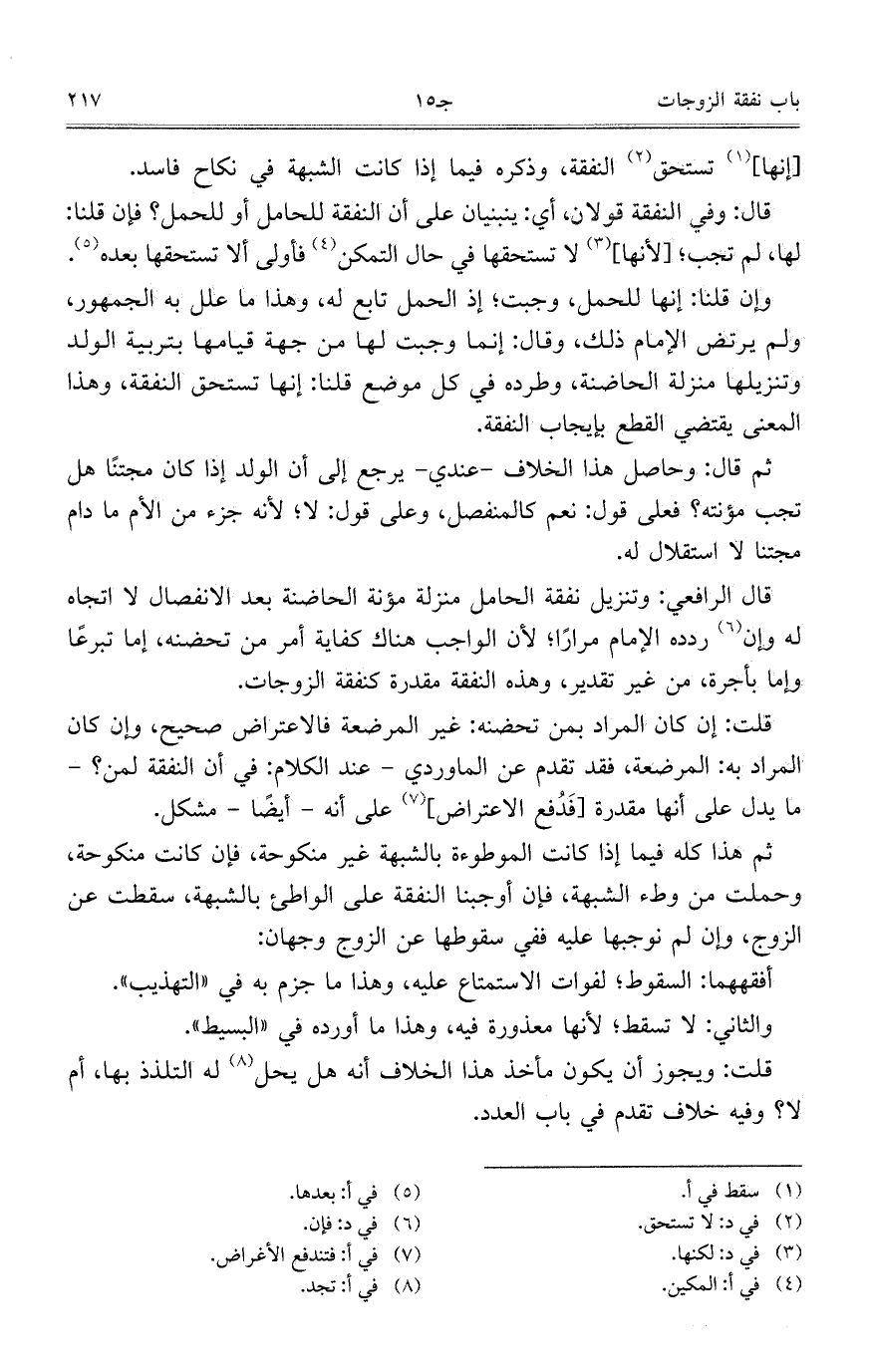 ثم قال: وحاصل هذا الخلاف- عندي- يرجع إلى أن الولد إذا كان مجتناً هل تجب مؤنته؟ فعلى قول: نعم كالمنفصل، وعلى قول: لا؛ لأنه جزء من الأم ما دام مجتناً لا استقلال له.