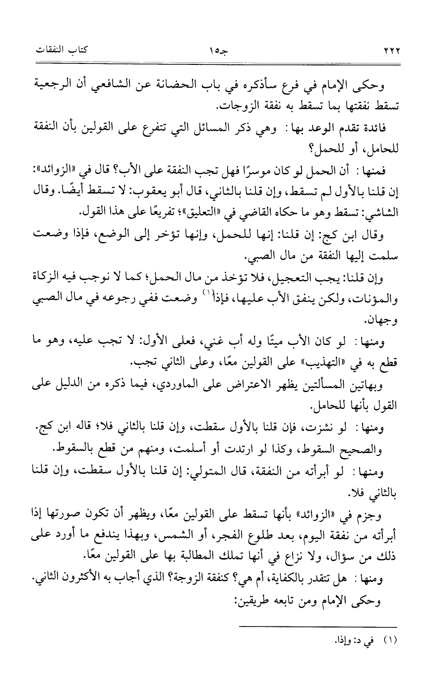 وحكى الإمام في فرع سأذكره في باب الحضانة عن الشافعي أن الرجعية تسقط نفقتها بما تسقط به نفقة الزوجات.
