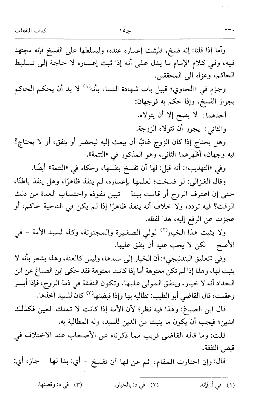 وجزم في "الحاوي" قبيل باب شهادة النساء بأنه لا بد أن يحكم الحاكم بجواز الفسخ، وإذا حكم به فوجهان: