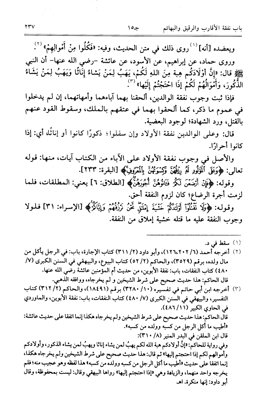 وقوله: {وَلا تَقْتُلُوا أَوْلادَكُمْ خَشْيَةَ إِمْلاقٍ نَحْنُ نَرْزُقُهُمْ وَإِيَّاكُمْ} [الإسراء: 31] فلولا وجوب النفقة عليه ما قتله خشية إملاق من النفقة.