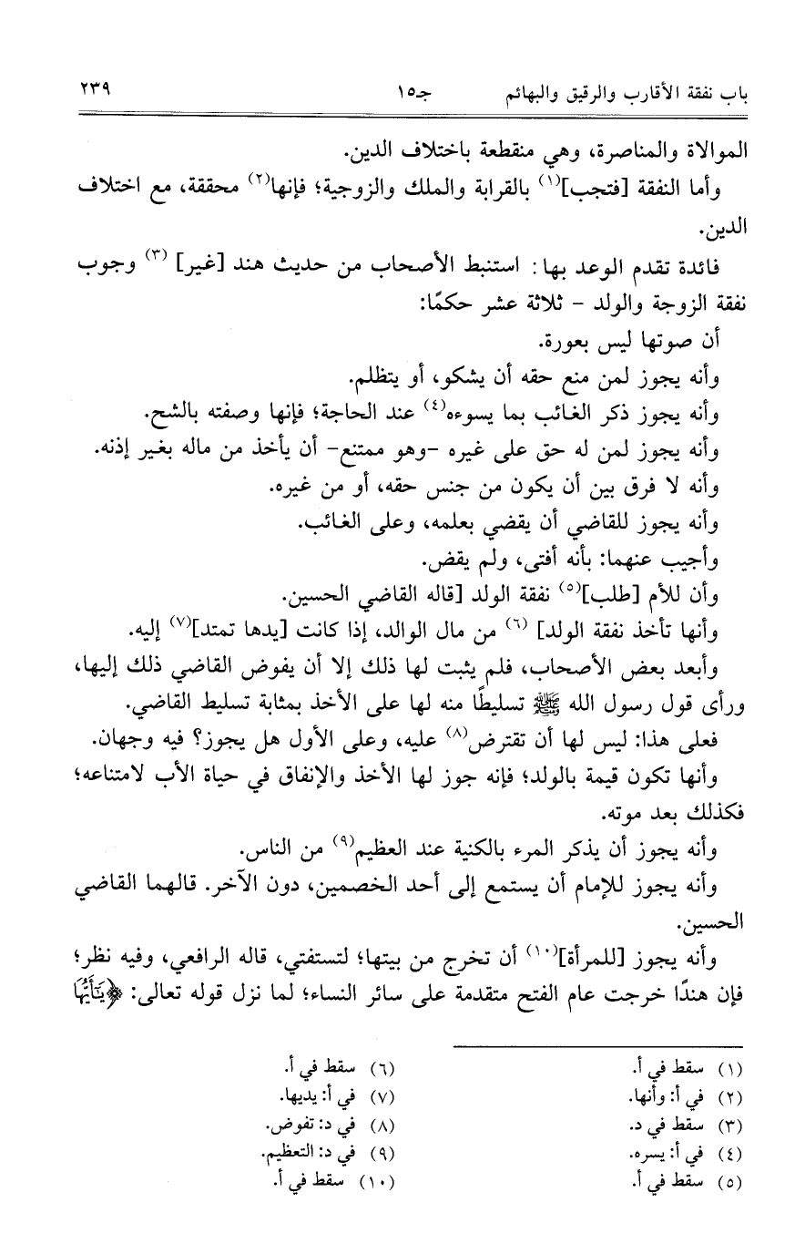 فائدة تقدم الوعد بها: استنبط الأصحاب من حديث هند [غير] وجوب نفقة الزوجة والولد- ثلاثة عشر حكماً: