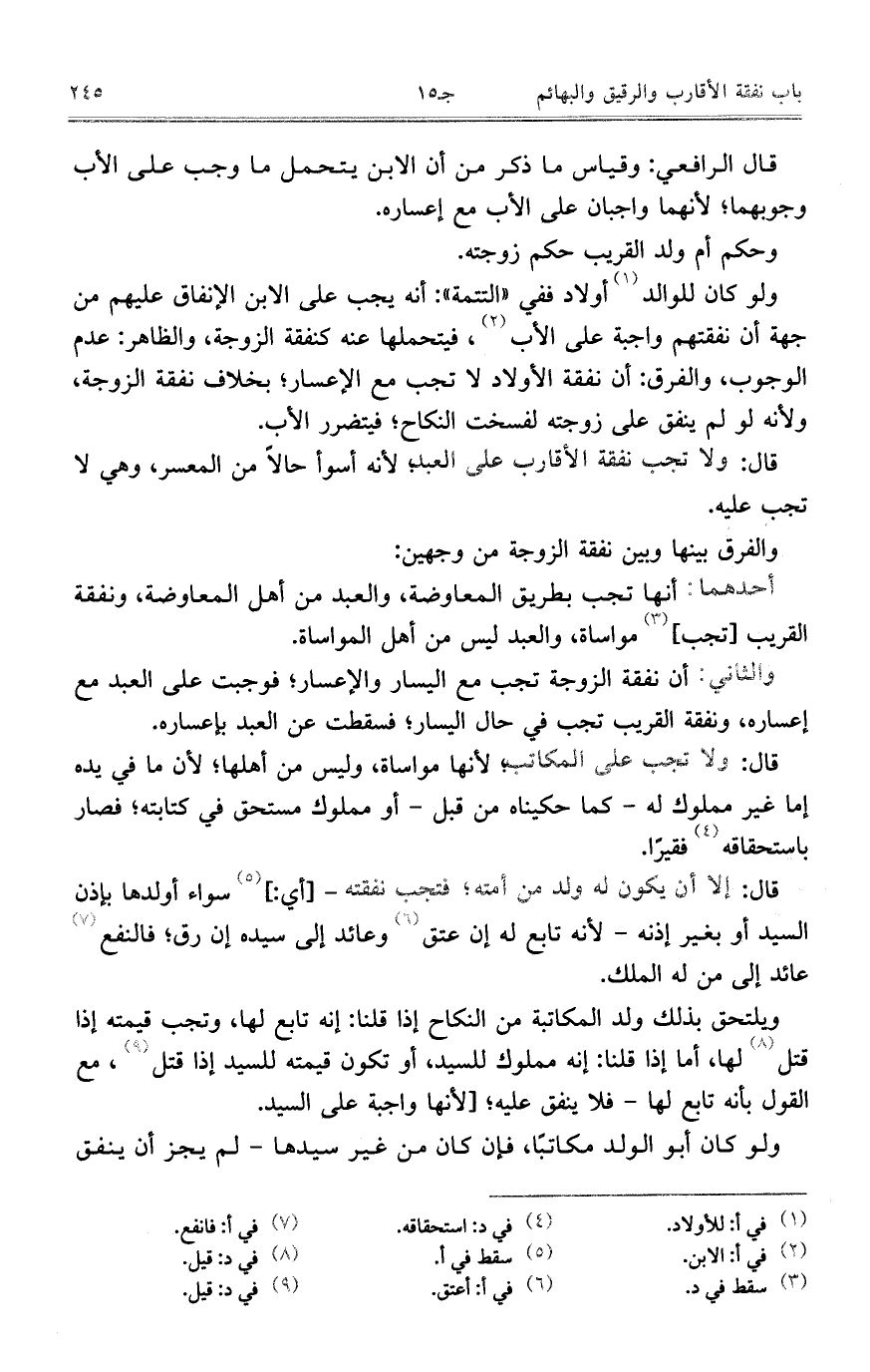 والثاني: أن نفقة الزوجة تجب مع اليسار والإعسار؛ فوجبت على العبد مع إعساره، ونفقة القريب تجب في حال اليسار؛ فسقطت عن العبد بإعساره.