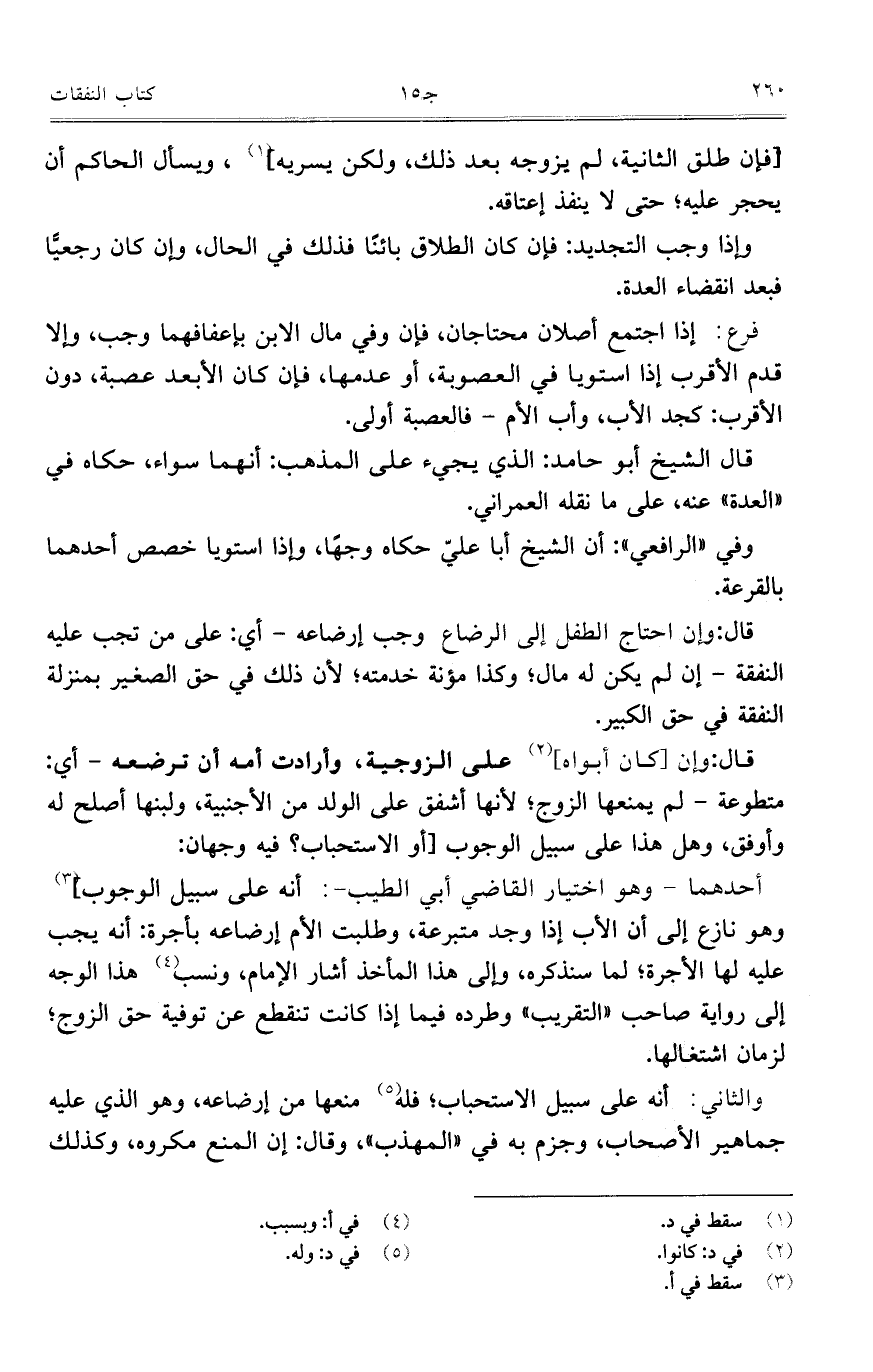 أحدهما – وهو اختيار القاضي أبي الطيب -: أنه على سبيل الوجوب] وهو نازع إلى أن الأب إذا وجد متبرعة, وطلبت الأم إرضاعه بأجرة: أنه يجب عليه الأجرة؛ لما سنذكره, وإلى هذا المأخذ أشار الإمام, ونسب هذا الوجه إلى رواية صاحب "التقريب" وطرده فيما إذا كانت تنقطع عن توفية حق الزوج؛ لزمان اشتغالها.
