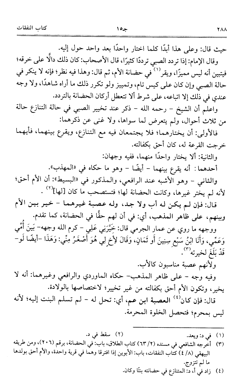 ووجهه ما روي عن عمار الجرمي قال: خَيَّرَنِي عَلِي – كرم الله وجهه – بَينَ أُمِّي وَعَمِّي، وَأَنَا ابْنُ سَبْعِ سِنيِنَ أَو ثَمَانٍ، وَقَالَ لأخٍ لِي هُوَ أَصْغَرُ مِنِّي: وَهَذَا – أيضاً لَو – قَدْ بَلَغَ لخيرته.