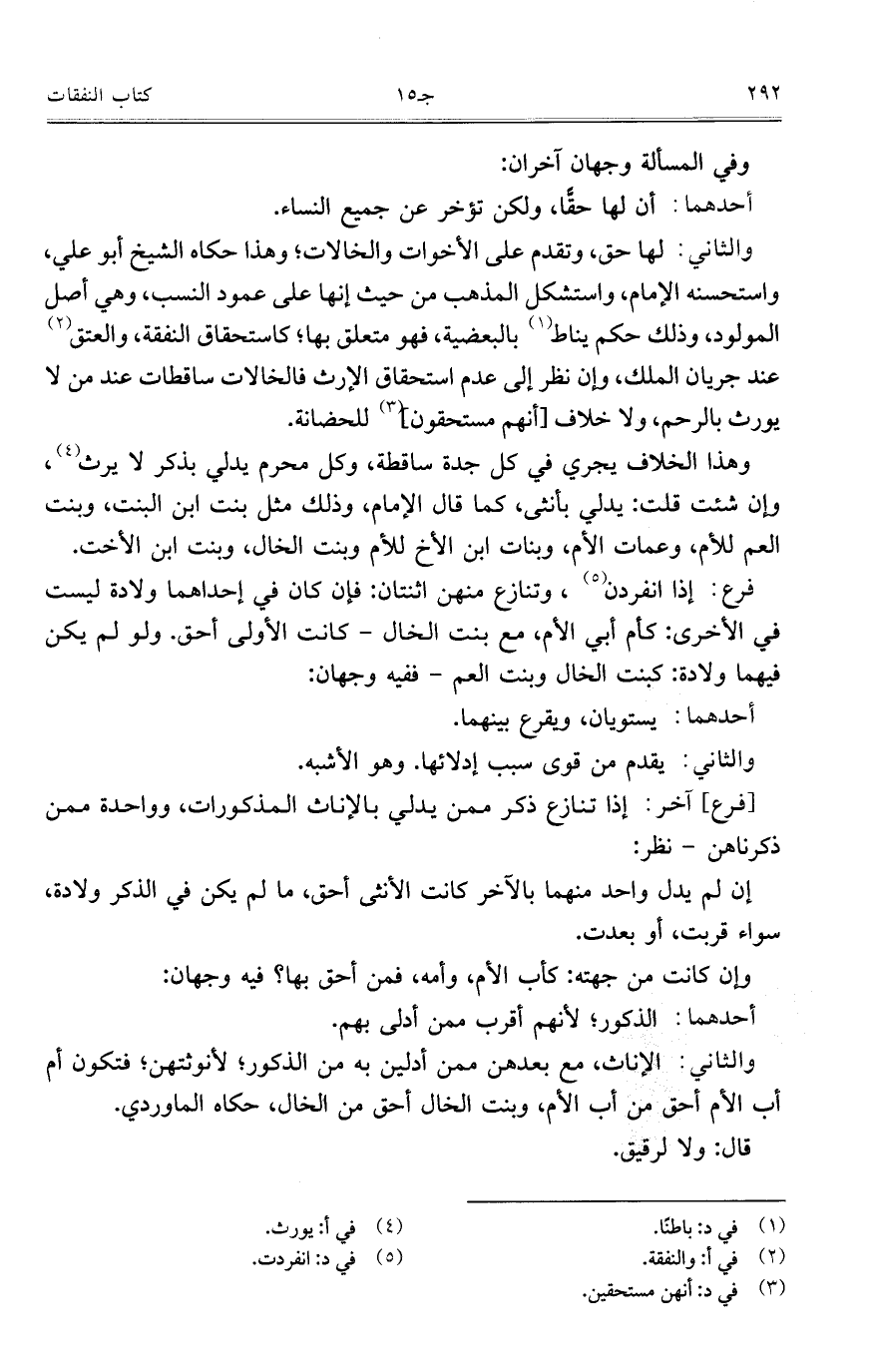 والثاني: الإناث، مع بعدهن ممن أدلين به من الذكور؛ لأنوثتهن؛ فتكون أم أب الأم أحق من أب الأم، وبنت الخال أحق من الخال، حكاه الماوردي.