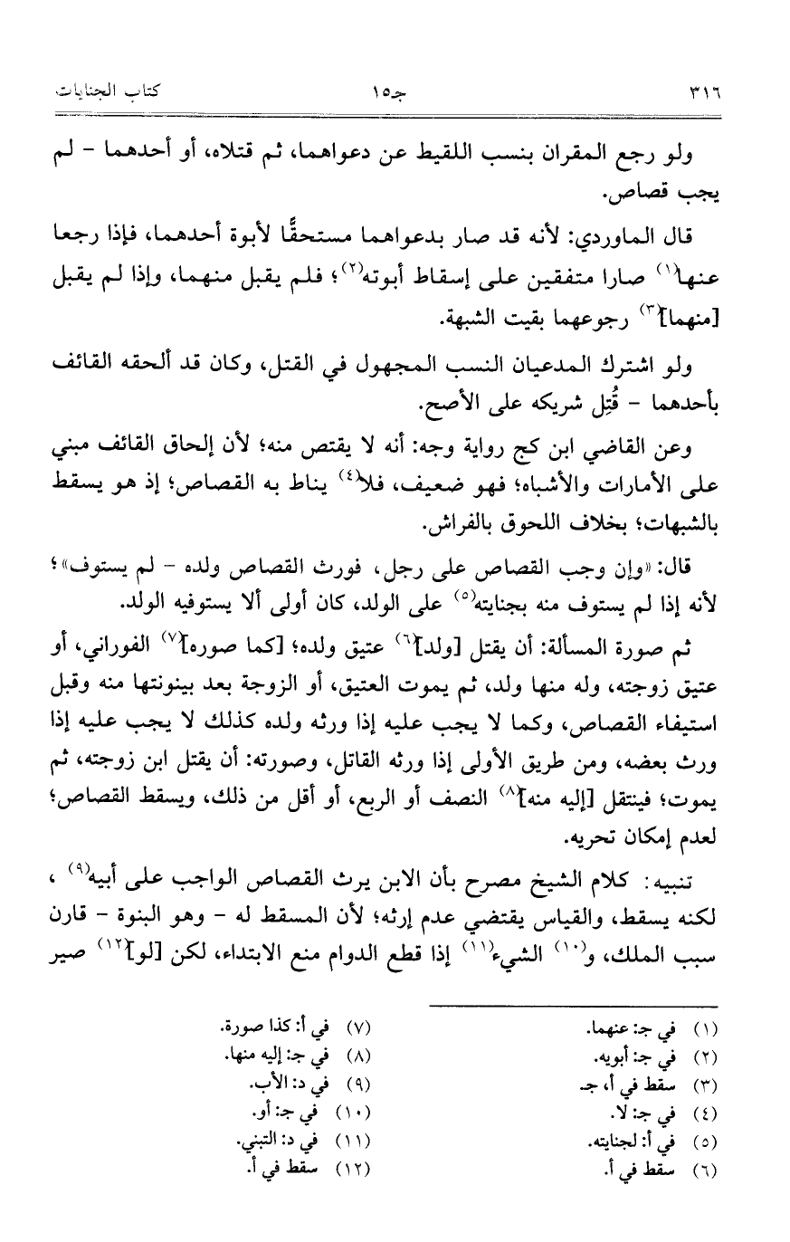 تنبيه: كلام الشيخ مصرح بأن الابن يرث القصاص الواجب على أبيه، لكنه يسقط، والقياس يقتضي عدم إرثه؛ لأن المسقط له – وهو البنوة – قارن سبب الملك، والشيء إذا قطع الدوام منع الابتداء، لكن [لو] صير