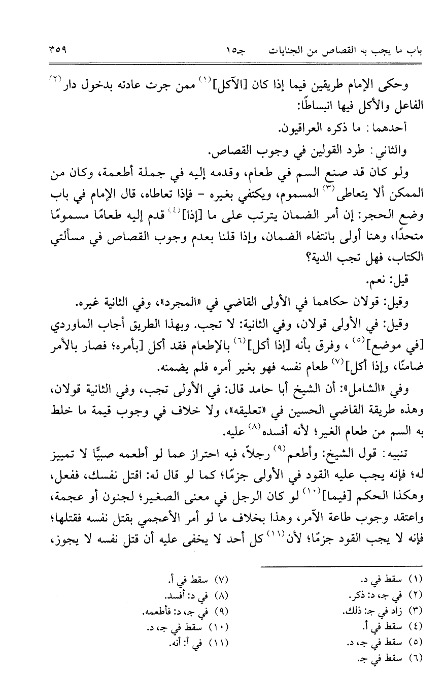 تنبيه: قول الشيخ: وأطعم رجلاً، فيه احتراز عما لو أطعمه صبيًّا لا تمييز له؛ فإنه يجب عليه القود في الأولى جزماً؛ كما لو قال له: اقتل نفسك، ففعل، وهكذا الحكم [فيما] لو كان الرجل في معنى الصغير؛ لجنون أو عجمة، واعتقد وجوب طاعة الآمر، وهذا بخلاف ما لو أمر العجمي بقتل نفسه فقتلها؛ فإنه لا يجب القود جزماً؛ لأن كل أحد لا يخفى عليه أن قتل نفسه لا يجوز،