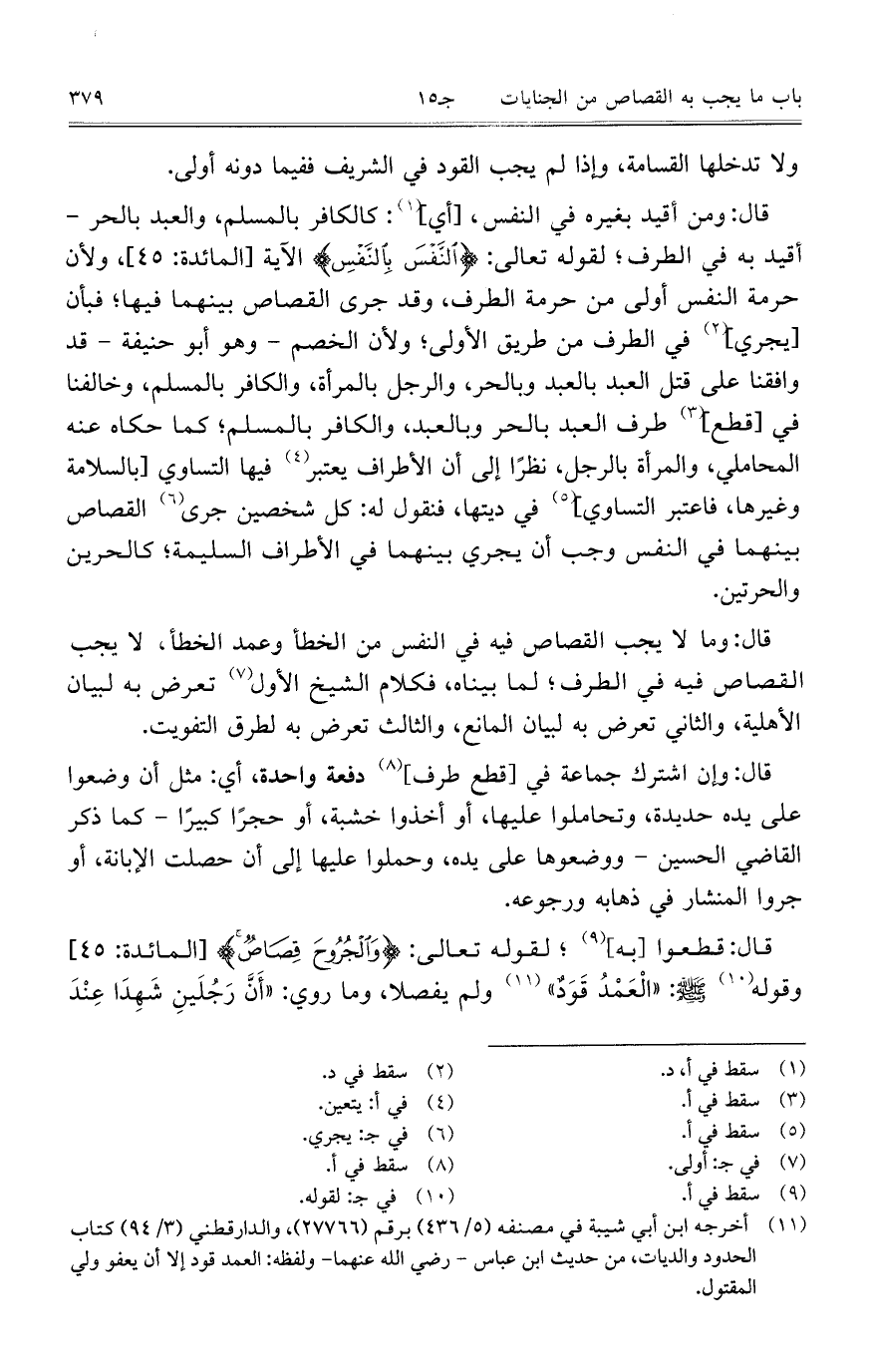 قال: قطعوا [به]؛ لقوله تعالى: {وَالْجُرُوحَ قِصَاصٌ} [المائدة: 45] وقوله صلى الله عليه وسلم:"الْعَمْدُ قَوَدٌ" ولم يفصلا، وما روي: "أَنَّ رَجُلَينِ شَهِدَا عِنْدَ