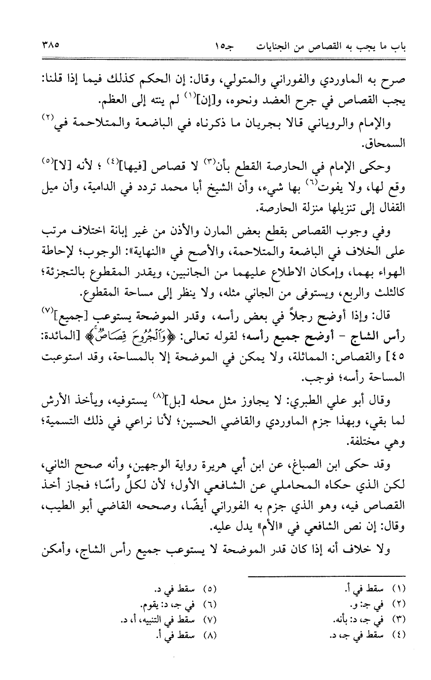 وقد حكى ابن الصباغ، عن ابن أبي هريرة رواية الوجهين، وأنه صحح الثاني، لكن الذي حكاه المحاملي عن الشافعي الأول؛ لأن لكلٍّ رأساً؛ فجاز أخذ القصاص فيه، وهو الذي جزم به الفوراني أيضاً، وصححه القاضي أبو الطيب، وقال: إن نص الشافعي في "الأم" يدل عليه.