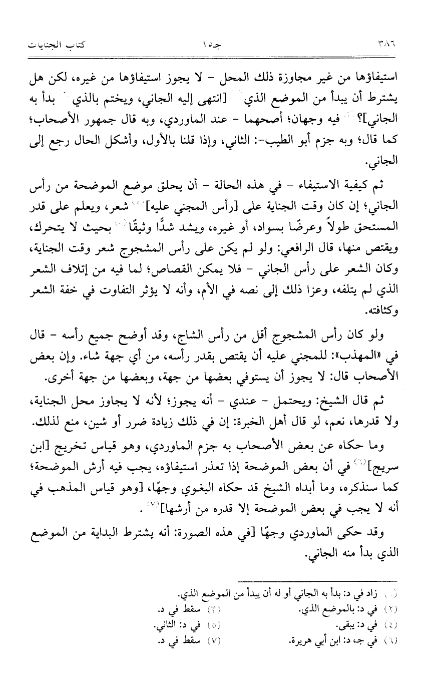 استيفاؤها من غير مجاوزة ذلك المحل - لا يجوز استيفاؤها من غيره، لكن هل يشترط أن يبدأ من الموضع الذي [انتهى إليه الجاني، ويختم بالذي بدأ به الجاني]؟ فيه وجهان؛ أصحهما- عند الماوردي، وبه قال جمهور الأصحاب؛ كما قال؛ وبه جزم أبو الطيب-: الثاني، وإذا قلنا بالأول، وأشكل الحال رجع إلى الجاني.