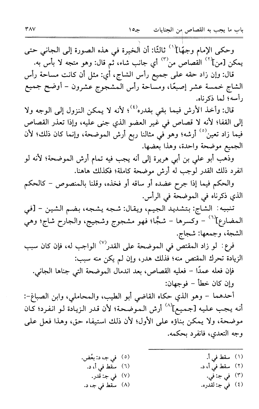 تنبيه: الشاج: بتشديد الجيم، ويقال: شجه يشجه، بضم الشين – [في المضارع]- وكسرها شجًّا؛ فهو مشجوج وشجيج، والجارح شاج؛ وهي الشجة، وجمعها: شجاج.