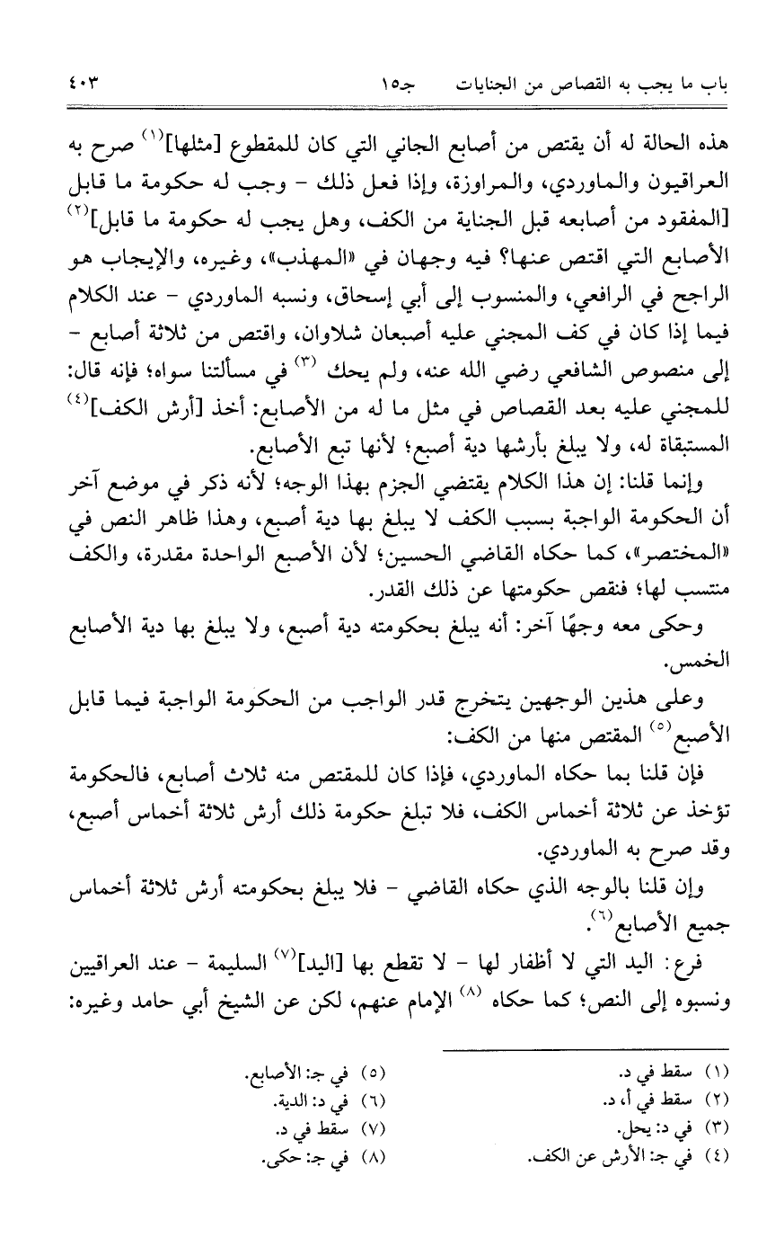 وعلى هذين الوجهين يتخرج قدر الواجب من الحكومة الواجبة فيما قابل الأصبع المقتص منها من الكف: