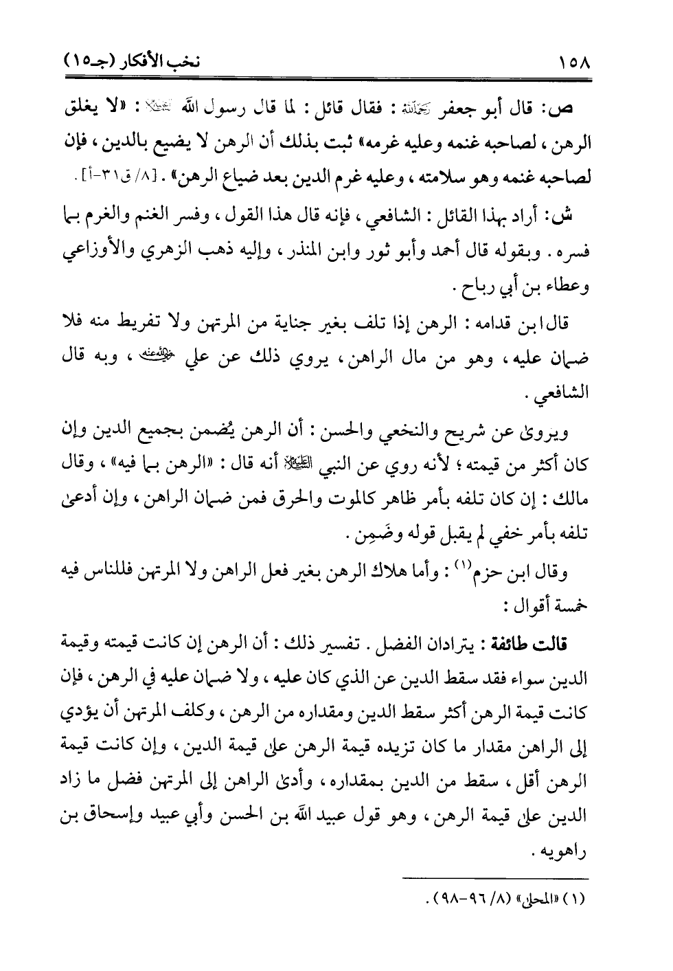 كتاب نخب الأفكار في تنقيح مباني الأخبار في شرح معاني الآثار (اسم الجزء: 15)