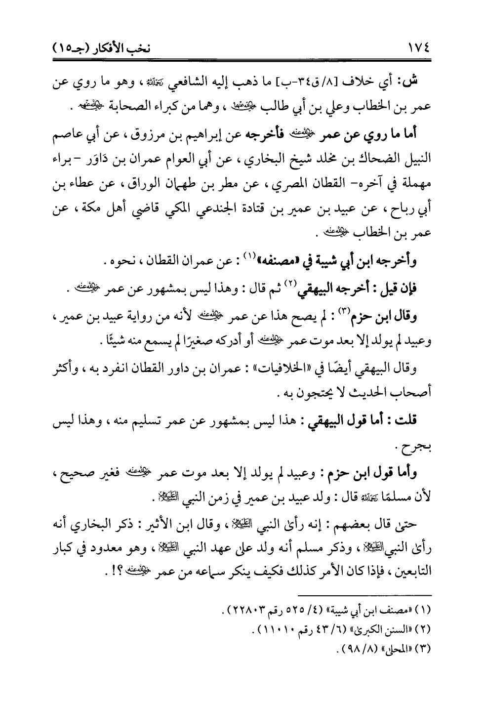 وأما قول ابن حزم: وعبيد لم يولد إلا بعد موت عمر - رضي الله عنه - فغير صحيح، لأن مسلمًا -رحمه الله- قال: ولد عبيد بن عمير في زمن النبي -عليه السلام-.
