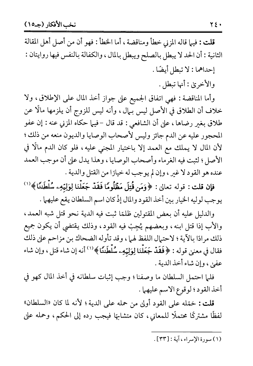 كتاب نخب الأفكار في تنقيح مباني الأخبار في شرح معاني الآثار (اسم الجزء: 15)