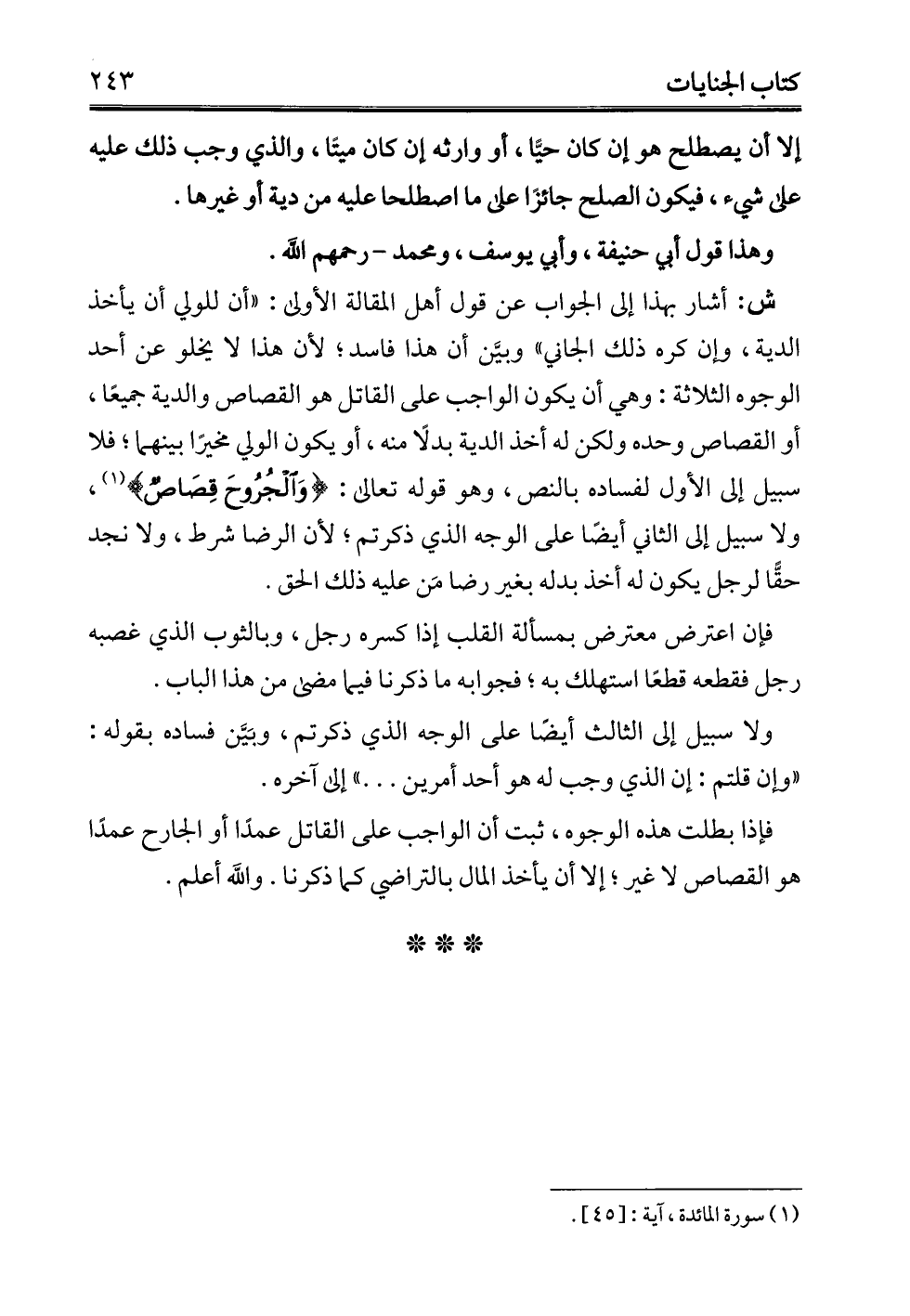 (¬1) سورة المائدة، آية: [45].