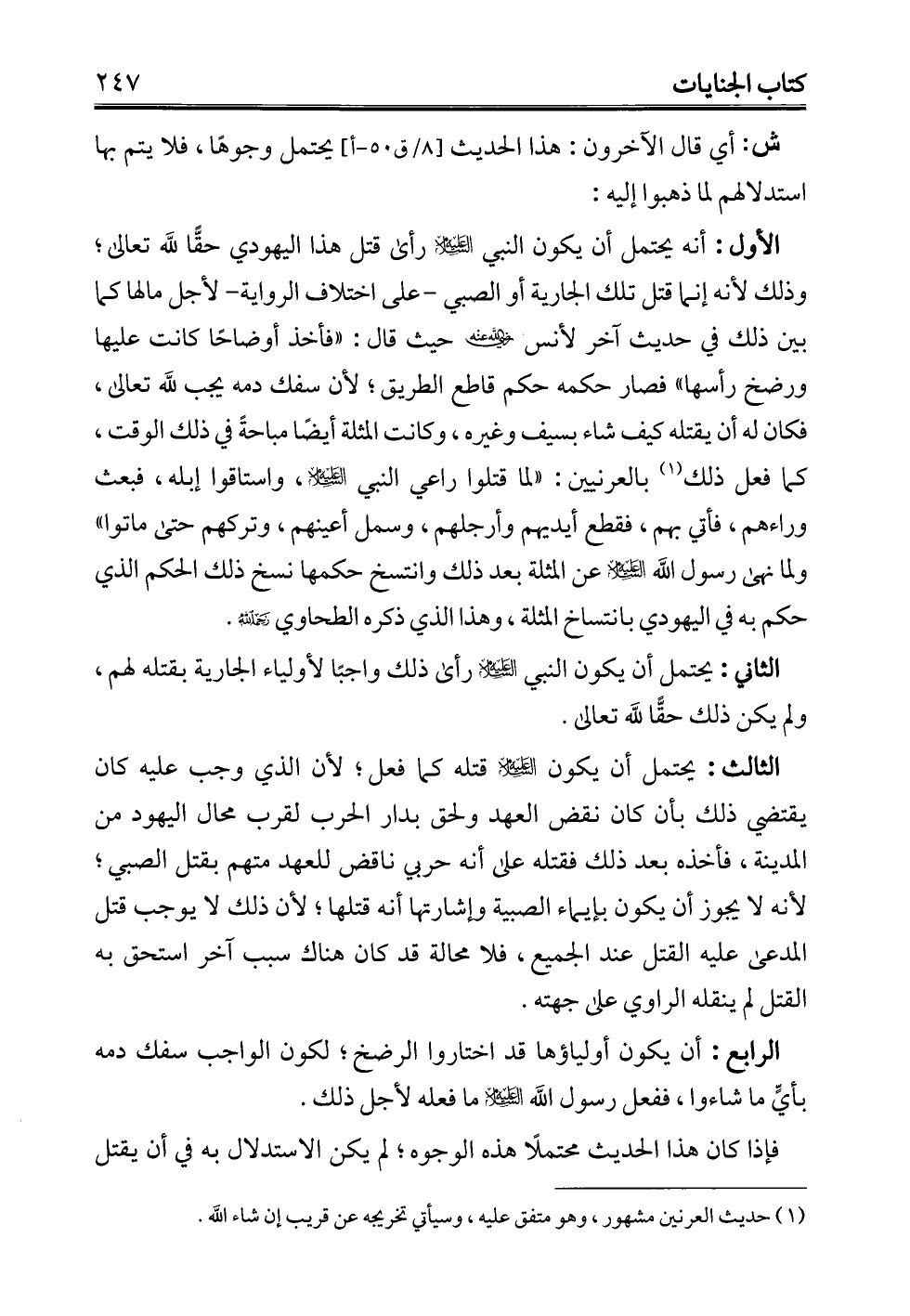 فإذا كان هذا الحديث محتملًا هذه الوجوه؛ لم يكن الاستدلال به في أن يقتل