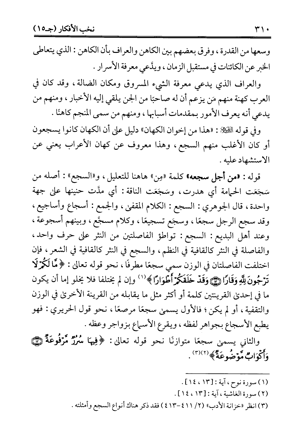 (¬3) انظر "خزانة الأدب" (2/ 411 - 413) فقد ذكر هناك أنواع السجع وأمثلته.