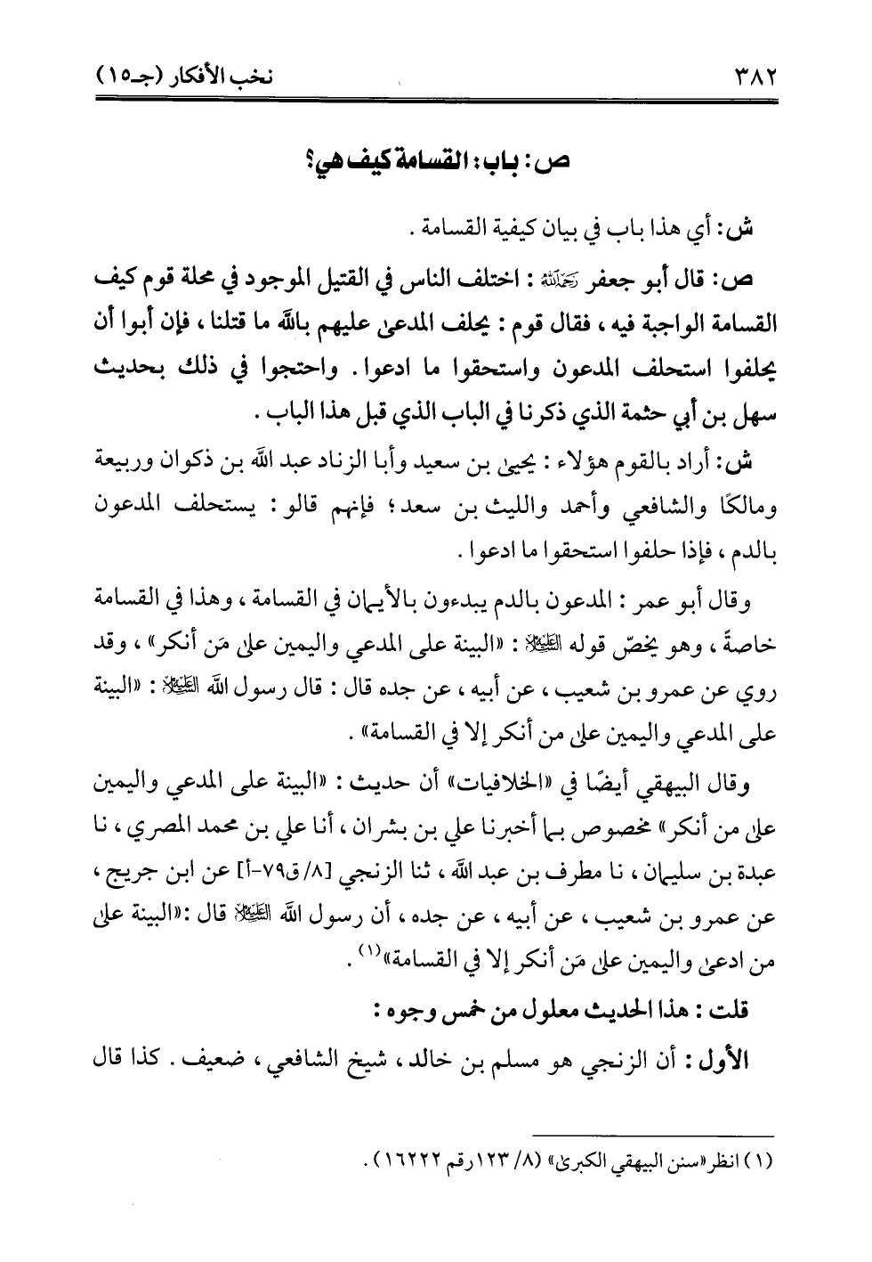 كتاب نخب الأفكار في تنقيح مباني الأخبار في شرح معاني الآثار (اسم الجزء: 15)