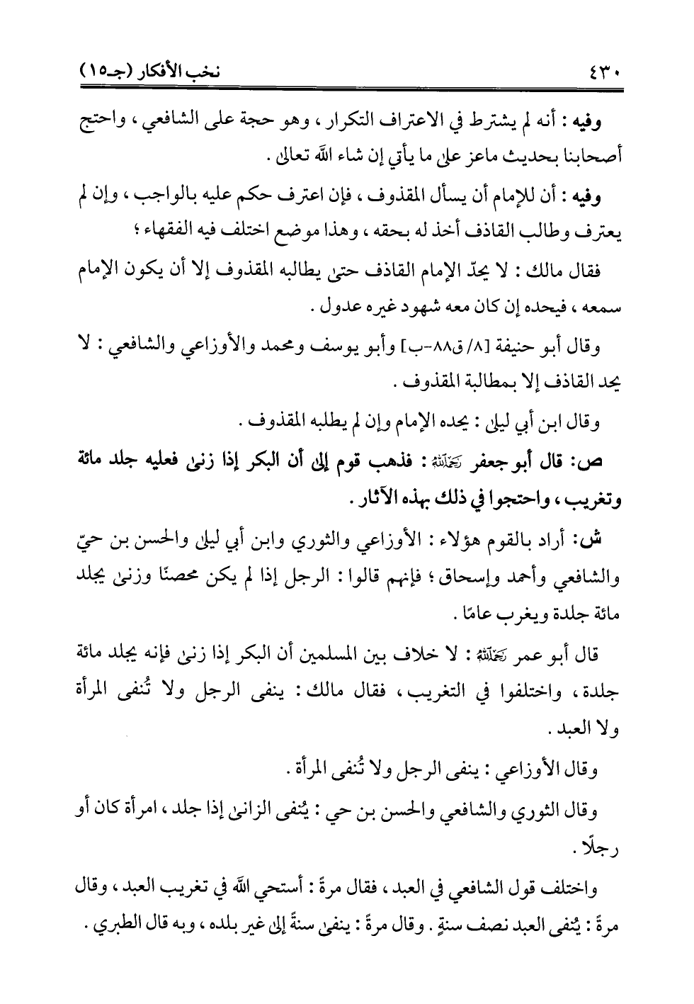 كتاب نخب الأفكار في تنقيح مباني الأخبار في شرح معاني الآثار (اسم الجزء: 15)