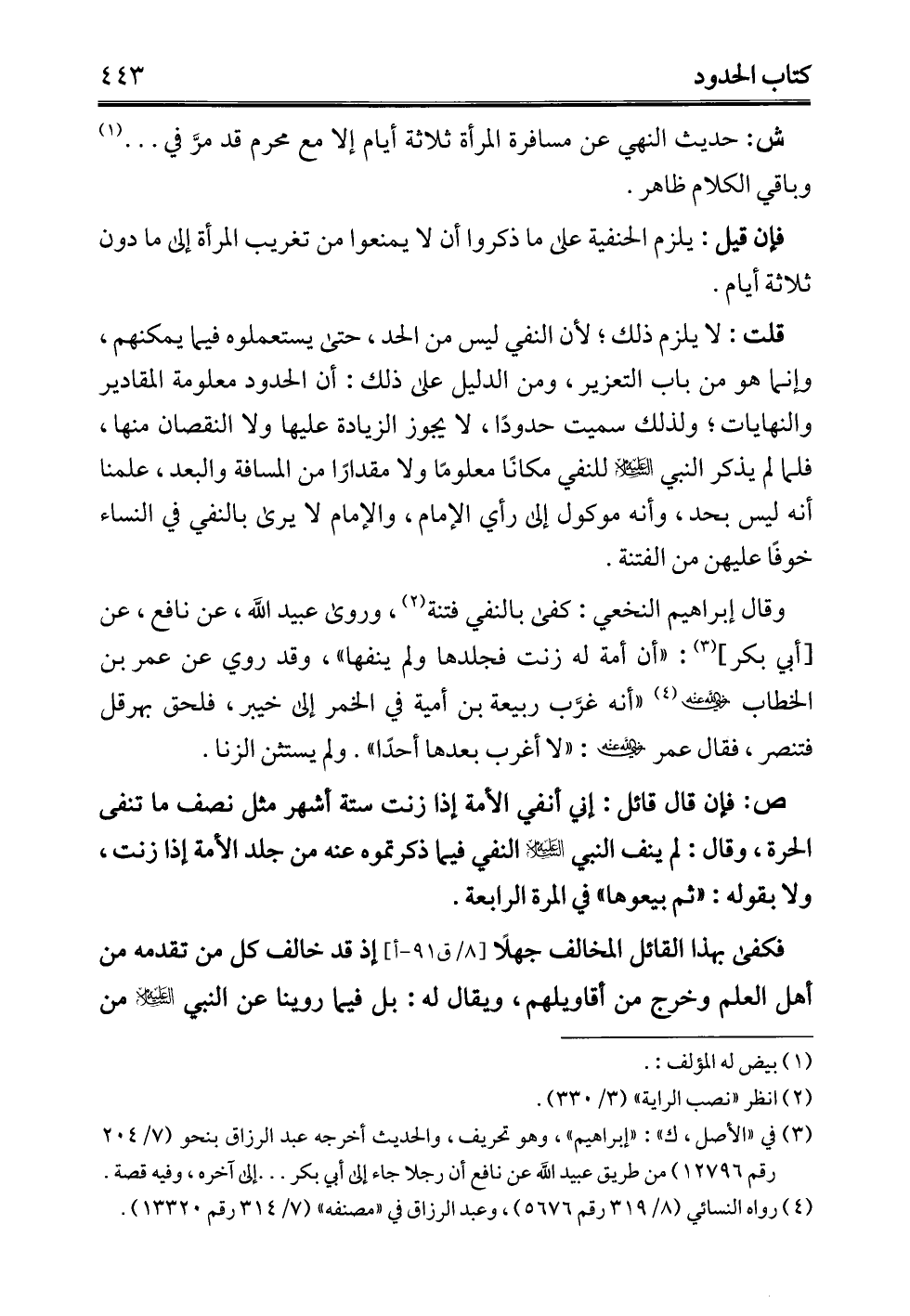 فإن قيل: يلزم الحنفية على ما ذكروا أن لا يمنعوا من تغريب المرأة إلى ما دون ثلاثة أيام.