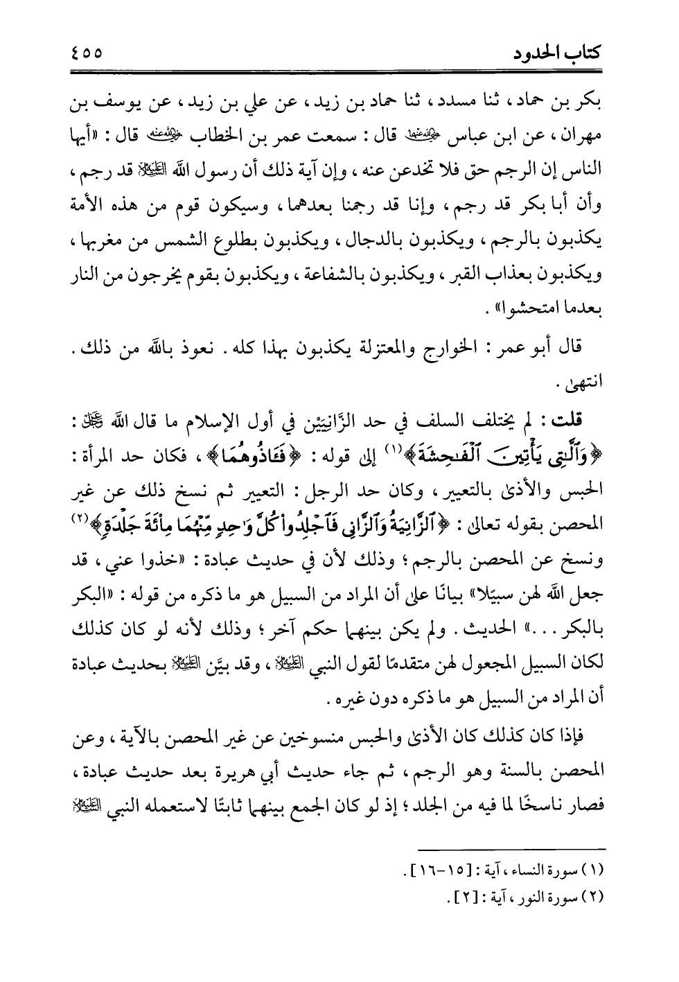 (¬1) سورة النساء، آية: [15 - 16].