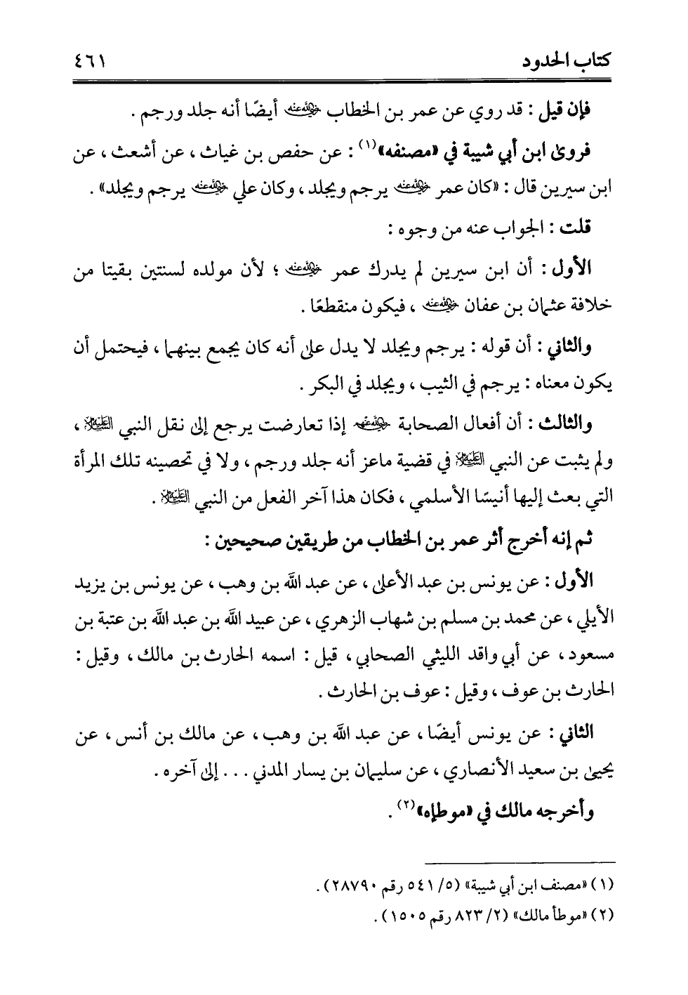 فإن قيل: قد روي عن عمر بن الخطاب - رضي الله عنه - أيضًا أنه جلد ورجم.