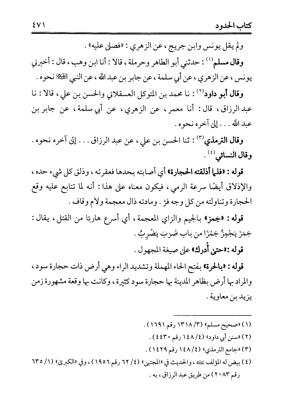 وقال أبو داود (¬2): نا محمد بن المتوكل العسقلاني والحسن بن علي، قالا: نا عبد الرزاق، قال: أنا معمر، عن الزهري، عن أبي سلمة، عن جابر بن عبد الله. . . . إلى آخره نحوه.