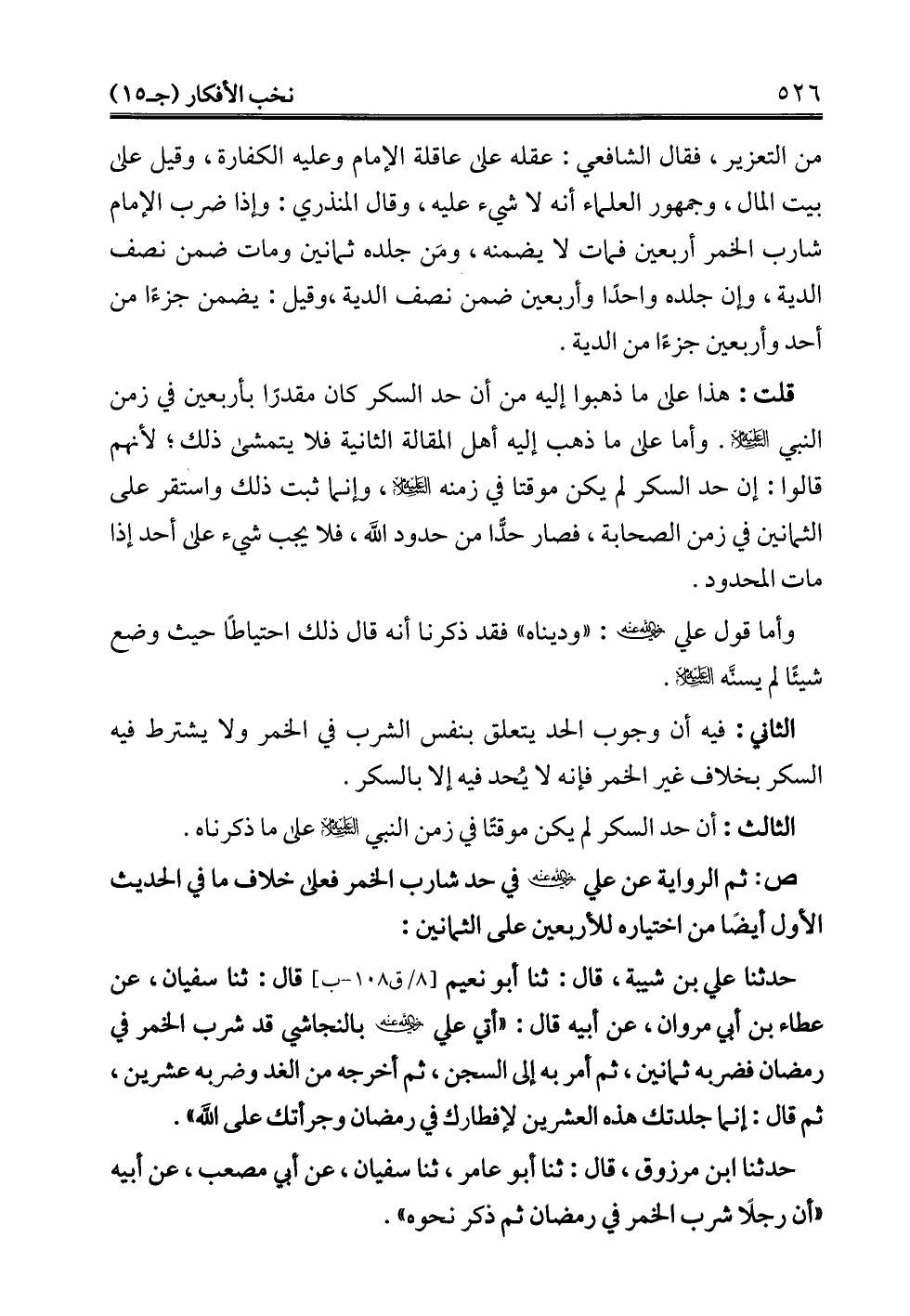 كتاب نخب الأفكار في تنقيح مباني الأخبار في شرح معاني الآثار (اسم الجزء: 15)