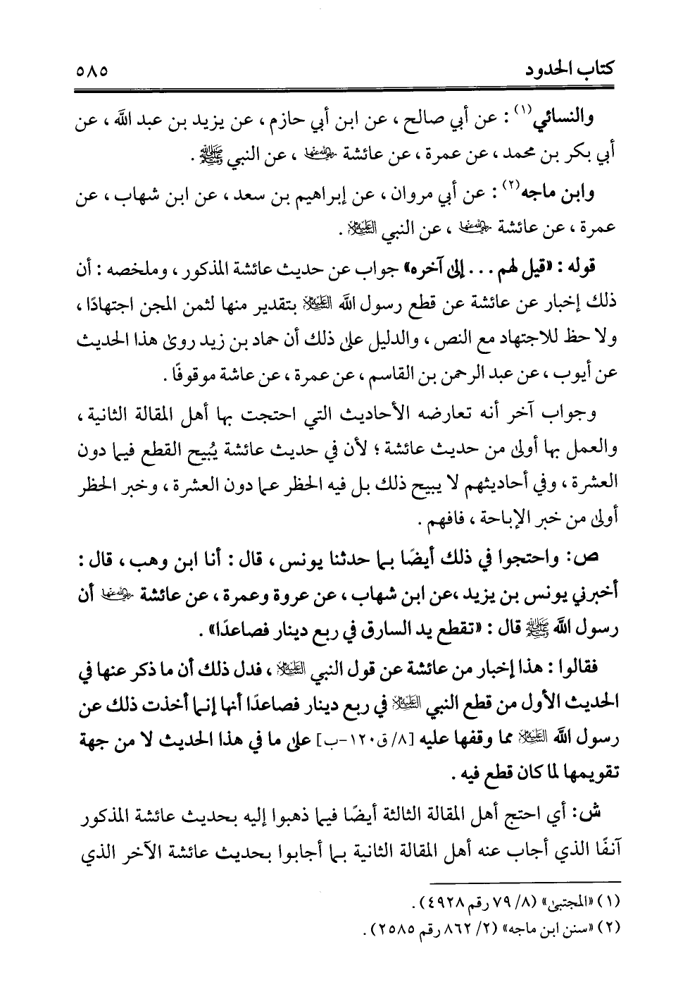 والنسائي (¬1): عن أبي صالح، عن ابن أبي حازم، عن يزيد بن عبد الله، عن أبي بكر بن محمد، عن عمرة، عن عائشة - رضي الله عنها -، عن النبي - صلى الله عليه وسلم -.