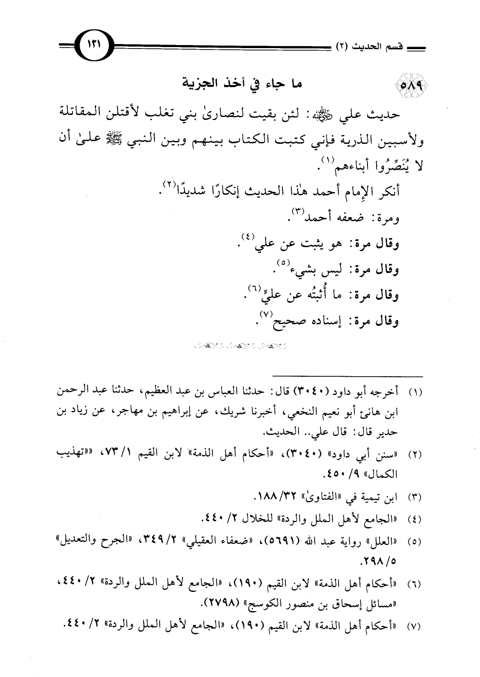 (¬2) "سنن أبي داود" (3040)، "أحكام أهل الذمة" لابن القيم 1/ 73، "تهذيب الكمال" 9/ 450.
