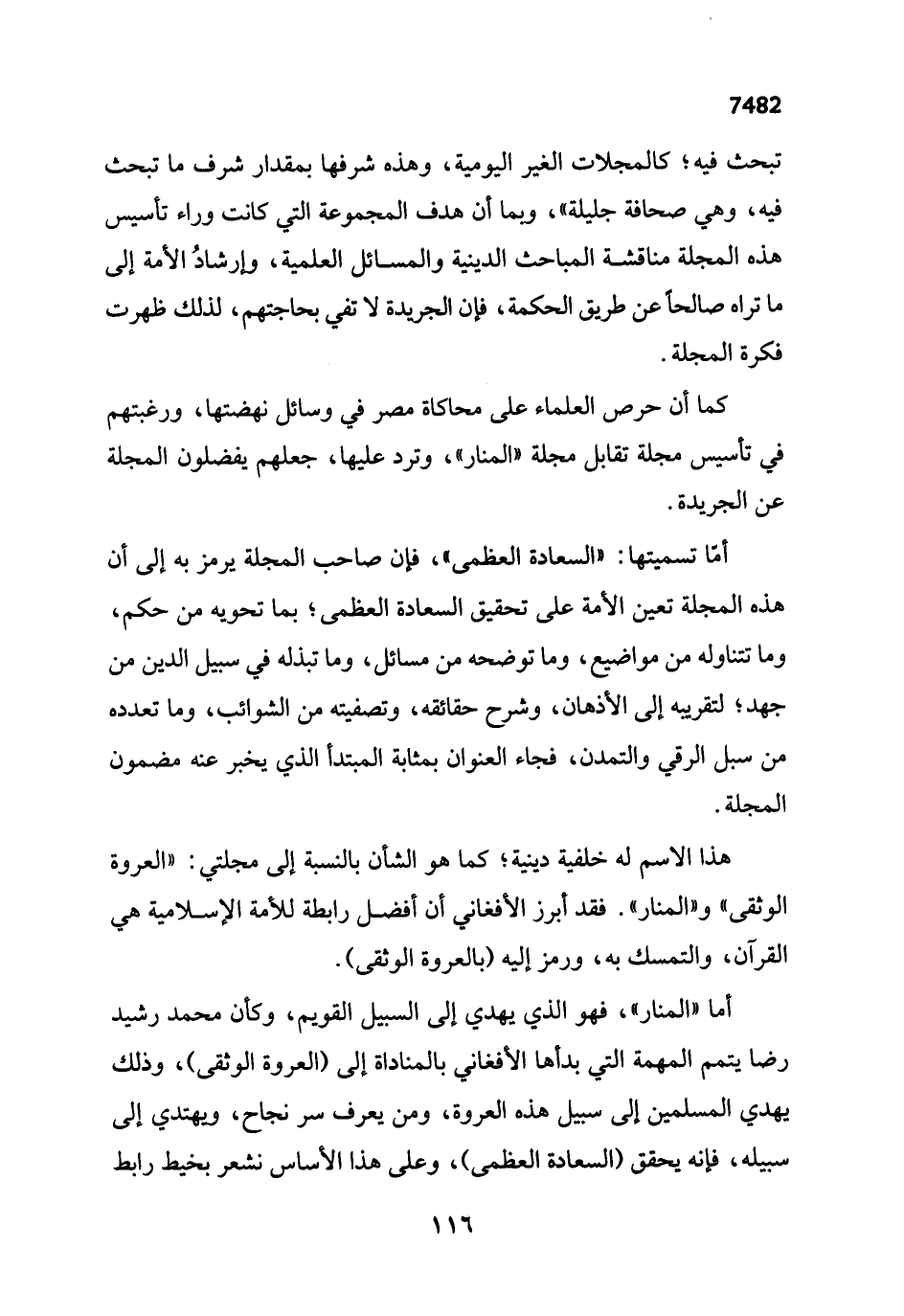 تبحث فيه؛ كالمجلات الغير اليومية، وهذه شرفها بمقدار شرف ما تبحث فيه، وهي صحافة جليلة"، وبما أن هدف المجموعة التي كانت وراء تأسيس هذه المجلة مناقشة المباحث الدينية والمسائل العلمية، وإرشادُ الأمة إلى ما تراه صالحاً عن طريق الحكمة، فإن الجريدة لا تفي بحاجتهم، لذلك ظهرت فكرة المجلة.