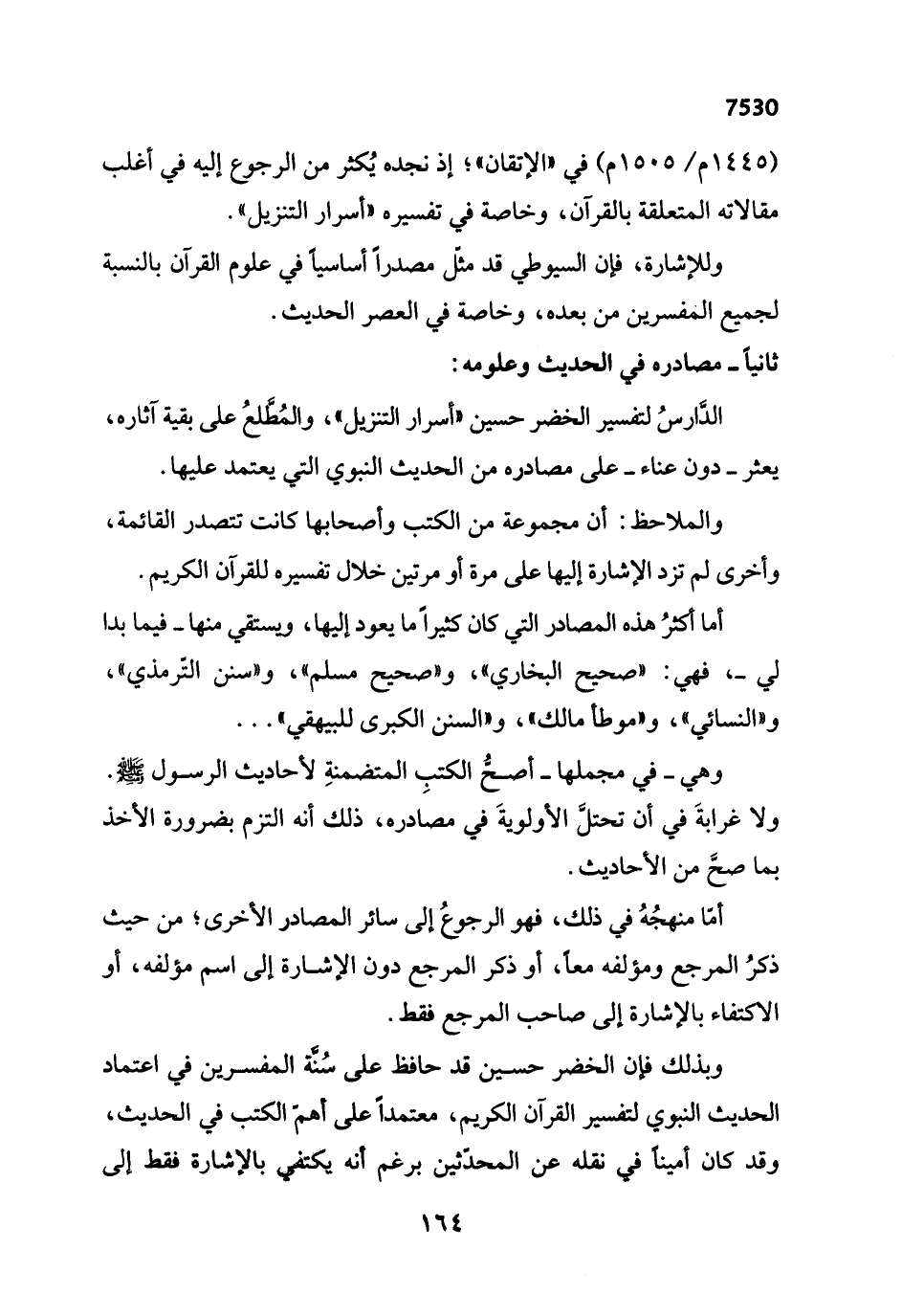 (1445 م / 1505 م) في "الإتقان"؛ إذ نجده يُكثر من الرجوع إليه في أغلب مقالاته المتعلقة بالقرآن، وخاصة في تفسيره "أسرار التنزيل".