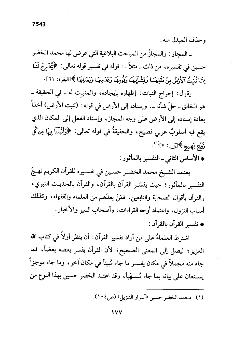 (¬1) محمد الخضر حسين "أسرار التنزيل" (ص 104).