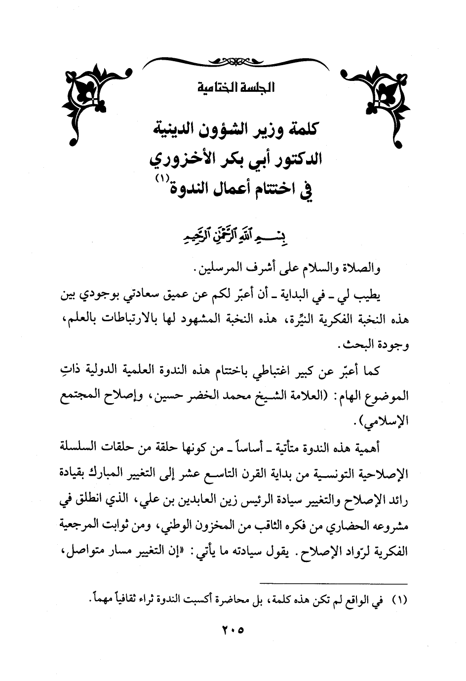 كلمة وزير الشؤون الدينية الدكتور أبي بكر الأخزوري في اختتام أعمال الندوة (¬1)