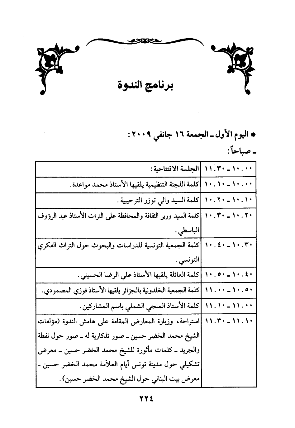 * اليوم الأول - الجمعة 16 جانفي 2009:
