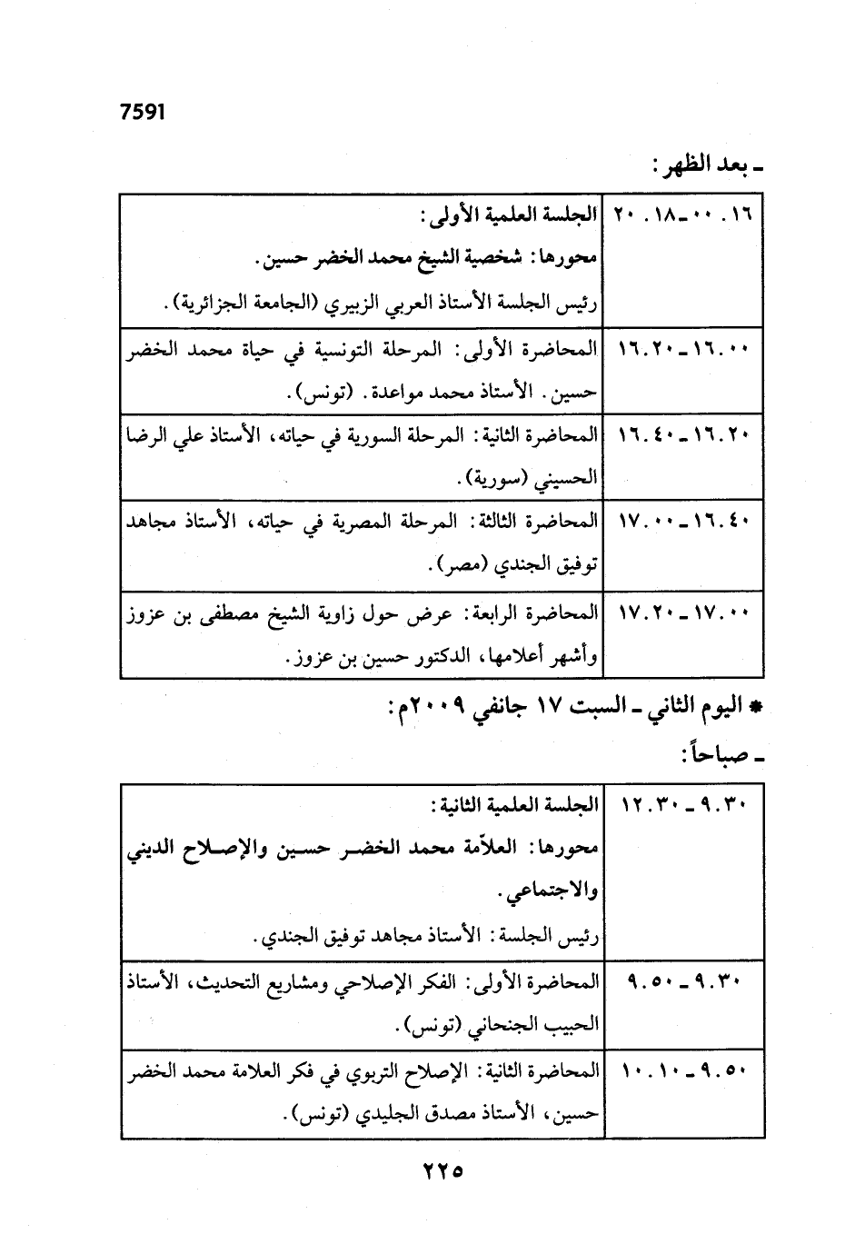 محورها: العلّامة محمد الخضر حسين والإصلاح الديني والاجتماعي.