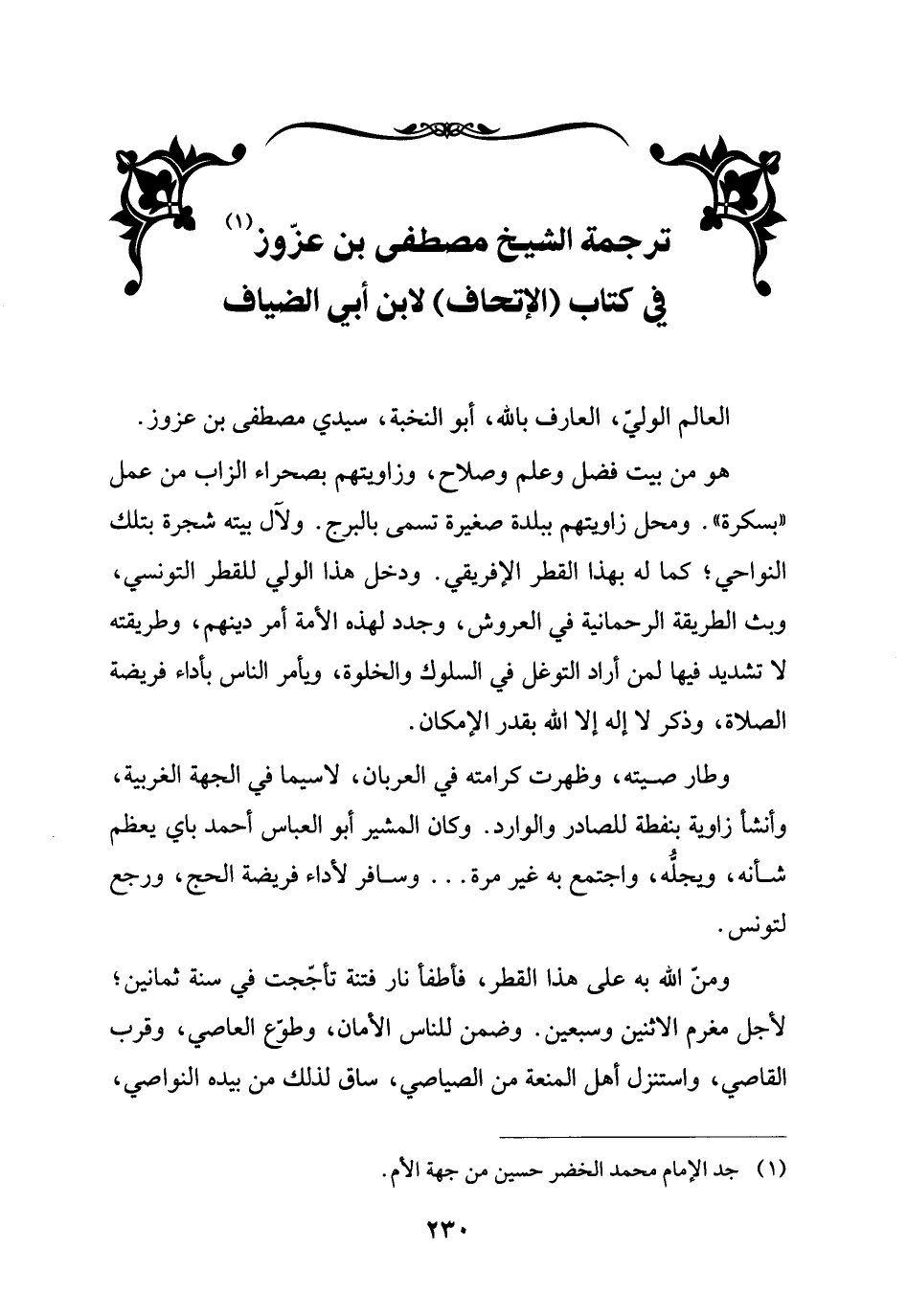 ترجمة الشيخ مصطفى بن عزّوز (¬1) في كتاب (الإتحاف) لابن أبي الضياف