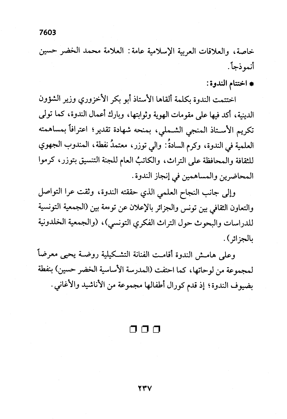 خاصة، والعلاقات العربية الإسلامية عامة: العلامة محمد الخضر حسين أنموذجاً.